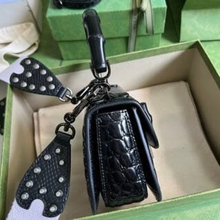 GUCCI’s new counter quality, real shot, material, exclusive custom-made top-layer crocodile pattern cowhide, new bamboo section Gongyan handbag, bamboo section is One of Gucci’s classic elements has become an exclusive royal symbol since the last century. It is baked with natural charcoal and handcrafted. It absorbs the inner beauty of nature and presents it on this handbag with a new look! Coupled with the high-end and elegant crocodile pattern, the whole bag exudes a charming atmosphere, which will make people look radiant for daily work needs or go shopping, it is really beautiful.
