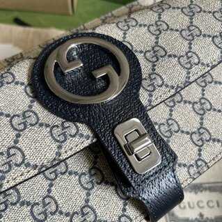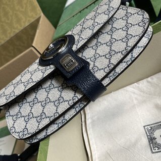 Gucci Blondie series waist bag, Gucci Blondie series reinterprets the interlocking double G logo with geometric shapes, running through the “Exquisite Gucci” series. A silver-toned buckle closure lends a sophisticated vintage feel to this new beige and ebony GG Supreme canvas fanny pack, while a zipped compartment offers versatility and contemporary style. Beige and ebony GG Supreme canvas, blue leather details, gold-toned hardware, cotton linen lining, round interlocking G, this piece can be worn high or low, or as a crossbody bag, inside: 2 Open compartments, exterior: 1 zipped pocket and 1 card pocket, shoulder strap (42 cm high) with twist buckle closure.
