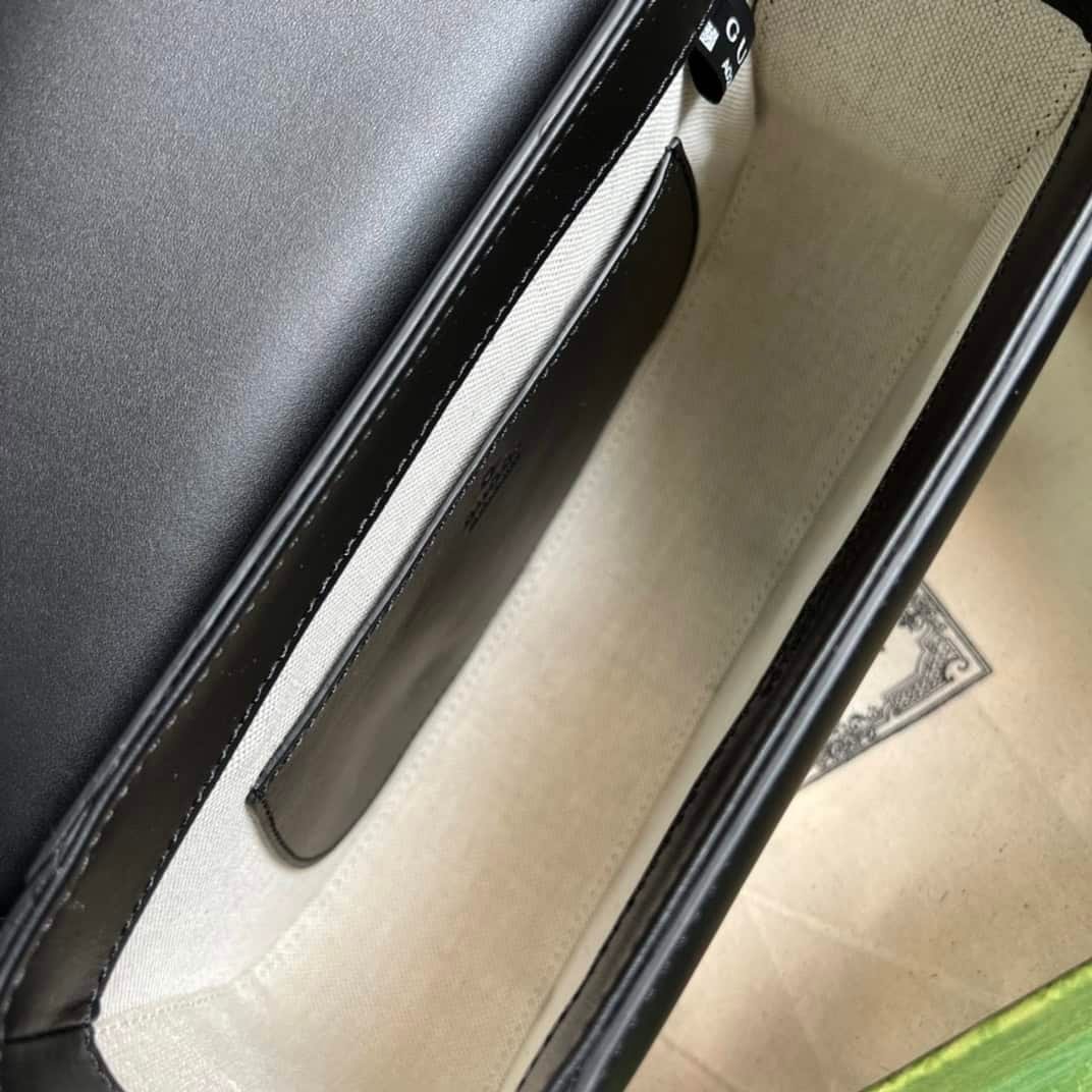 With a full set of original green box packaging The original Pi Gucci “Aria-Fashion Aria” series uses modern techniques to reinterpret classic elements. Bamboo is one of the classic elements of Gucci, which has appeared in various series of the brand since the 1940s. After more than eighty years of evolution, this classic element has been reinvented in black leather on this small tote. The handbag is also equipped with two interchangeable shoulder straps – the smooth leather material shows elegant and classic temperament, and the striped webbing shoulder strap shows a strong brand connotation.