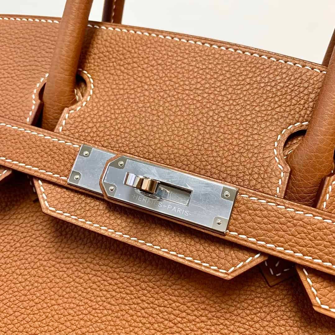 Hermes Birkin Silver Buckle Handbag – Gold Brown 60857 | Sandra Bags
