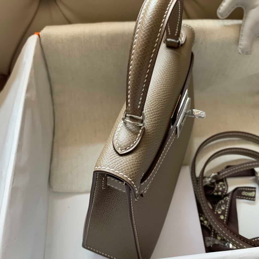 New arrival in stock ck18 elephant gray Mini 2nd generation 2nd generation original epsom leather silver buckle top full hand-stitched.