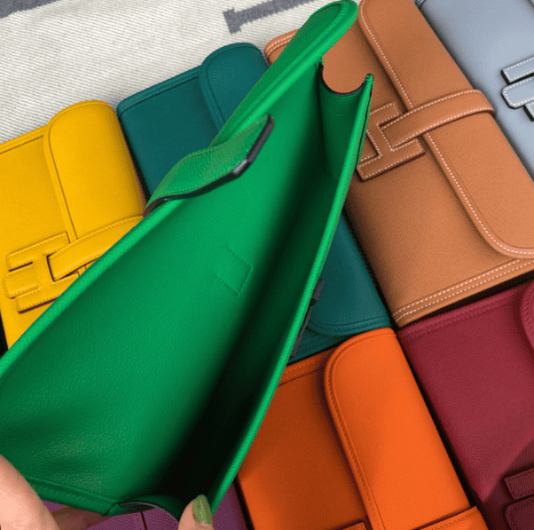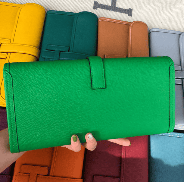 Handbag epsom turtledove Bamboo Green wax thread half hand sewing.