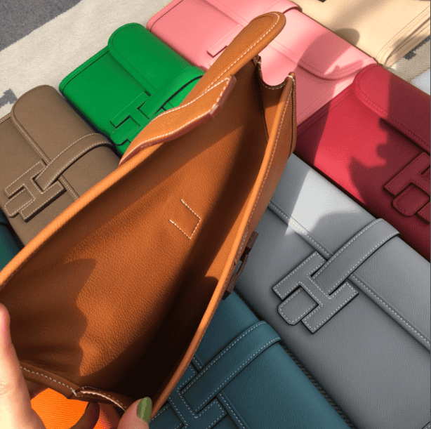 Handbag epsom turtledove Gold Brown wax thread half hand sewing.