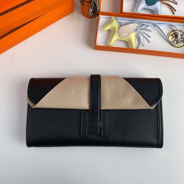 Jige elan 29cm clutch, 89 black original swift calfskin, sheepskin lining