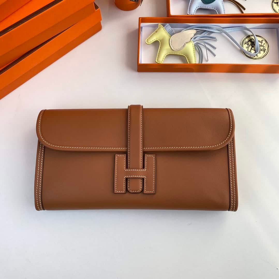 Jige elan 29cm clutch, ck37 golden brown original swift calfskin, sheepskin lining