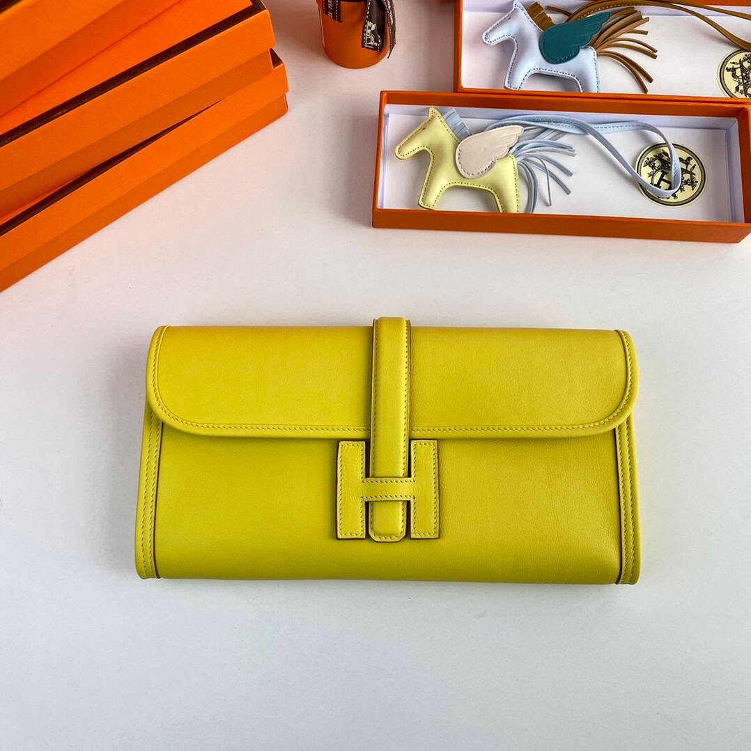 Jige elan 29cm clutch, 9R lemon yellow original swift calfskin, sheepskin lining