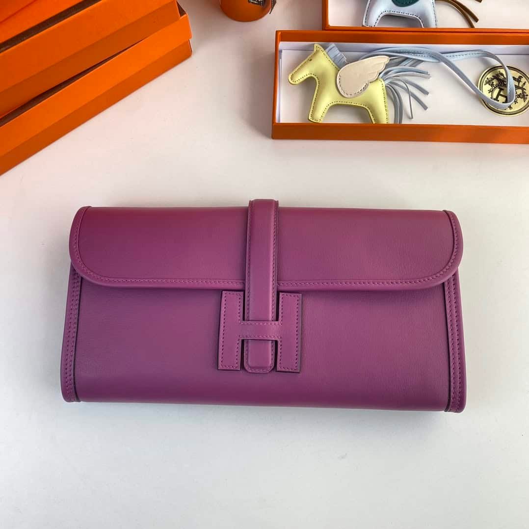 Jige elan 29cm clutch, P39 sea anemone purple original swift calfskin, sheepskin lining