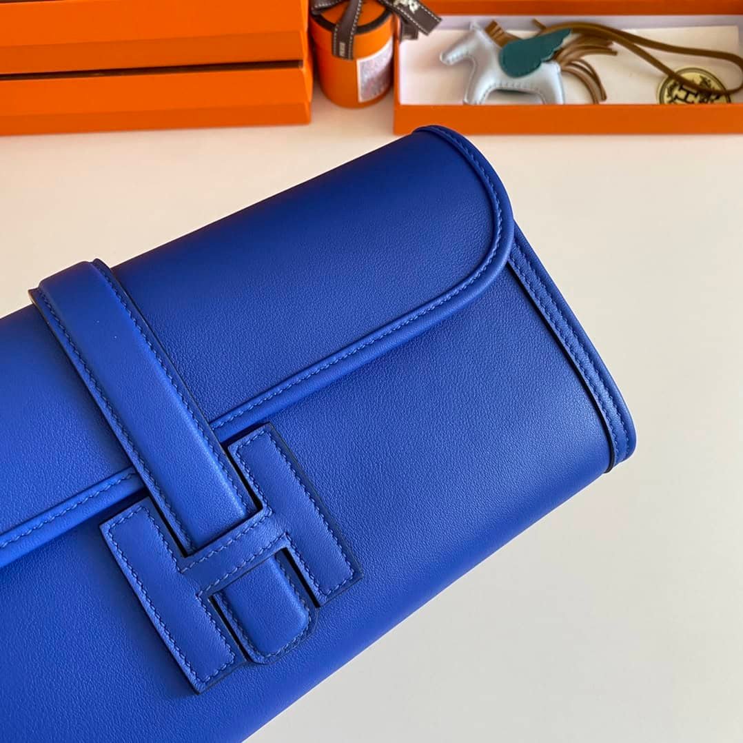 Jige elan 29cm handbag, 7T electro-optic blue, original swift calfskin, sheepskin lining