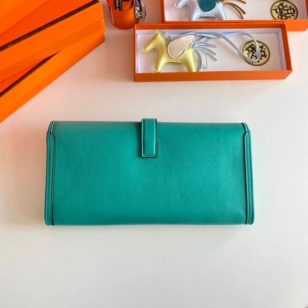 Jige elan 29cm handbag, U1 Verona Green factory swift calfskin, sheepskin lining