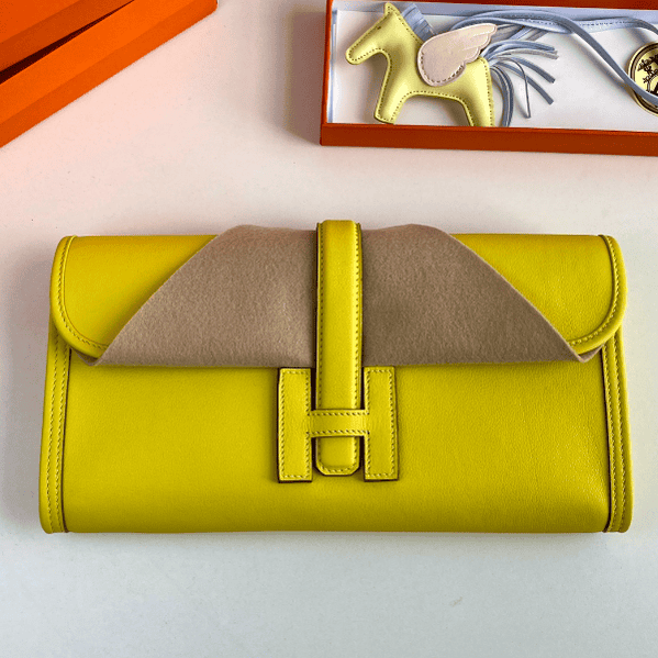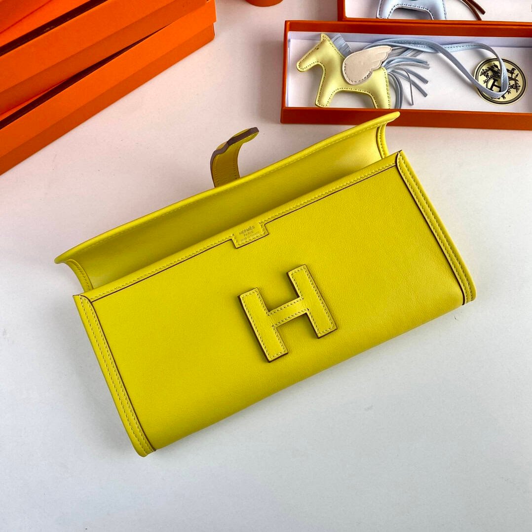 Jige elan 29cm handbag, 9R lemon yellow original factory swift calfskin, sheepskin lining