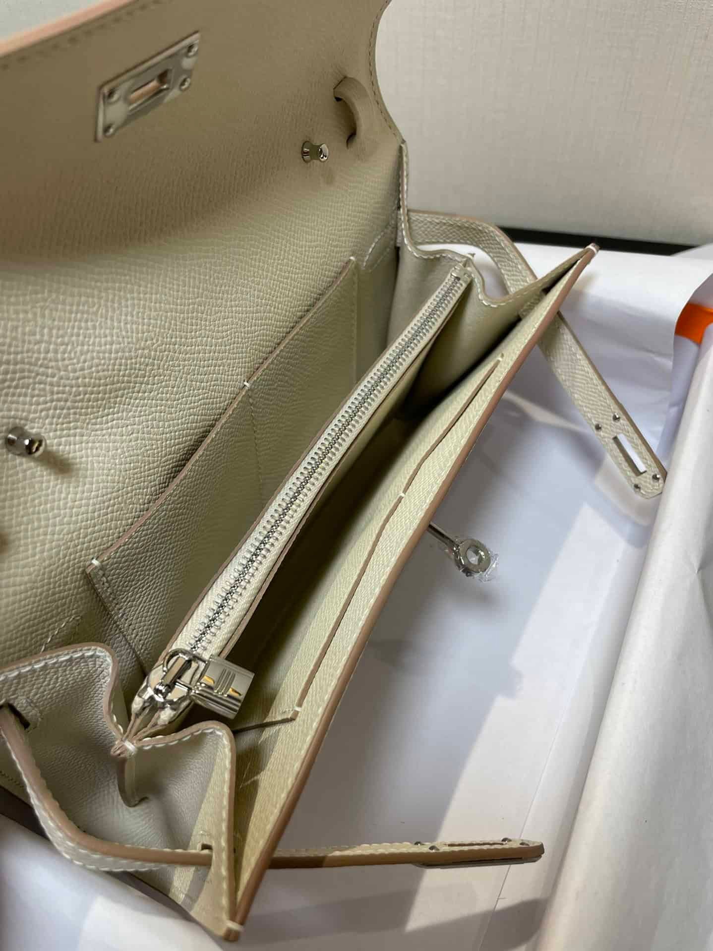 Kelly woc hot sale, everyone must pay, practical, multi-purpose, detail picture color milkshake white, leather epsom [spot] (dimensions: length 20.5 x width 11 x thickness 2 cm)
