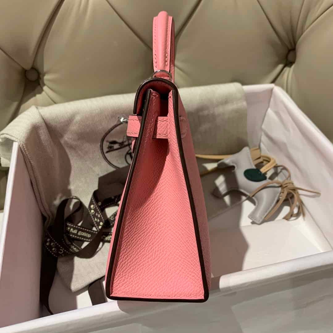 New arrival in stock 1Q milkshake powder Mini 2nd generation 2nd generation original epsom leather silver buckle top full hand-stitched