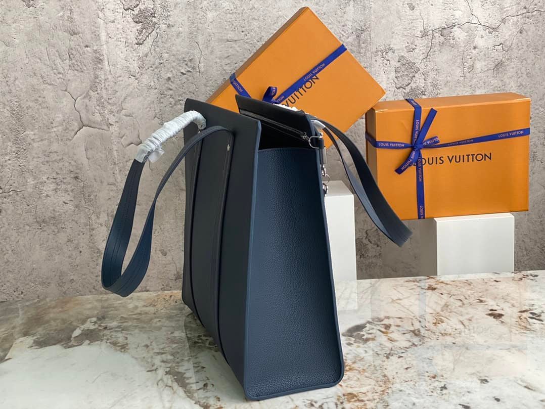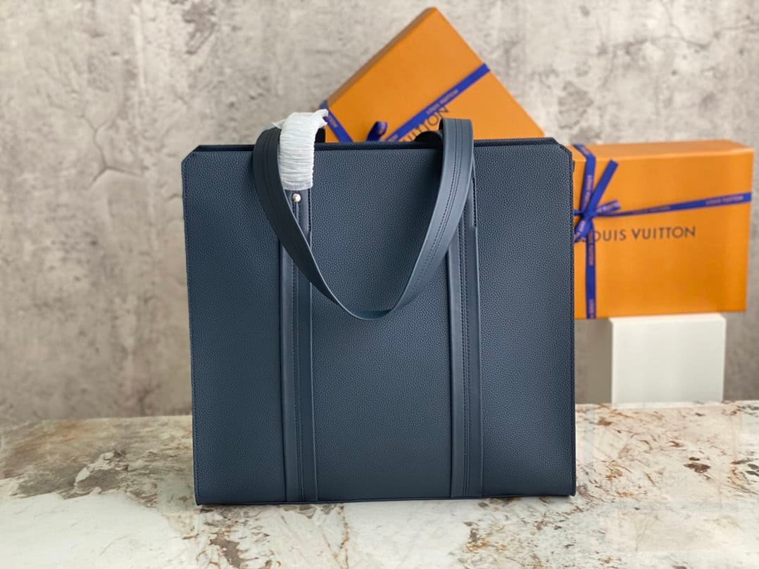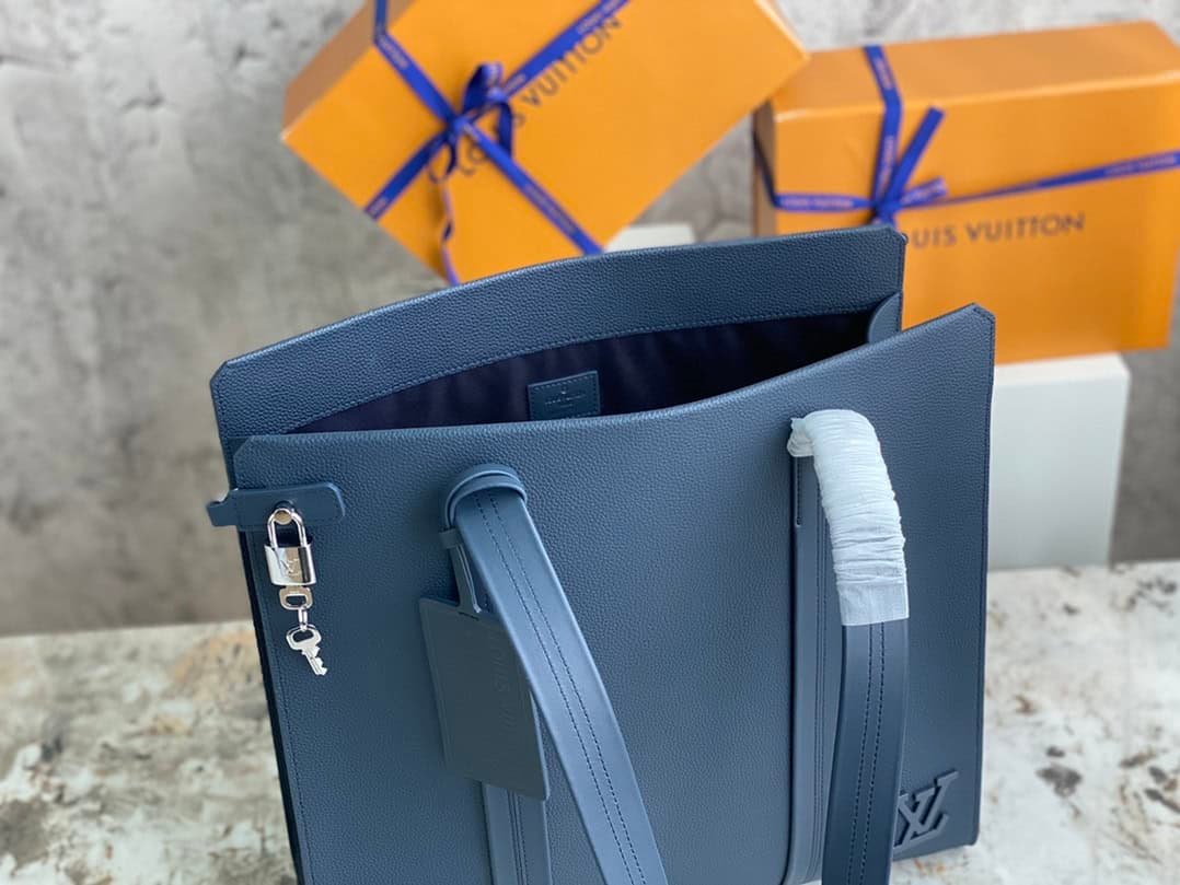 The brand new LV Aerogram Tote bag is made of soft and delicate grained calfskin, subtly embellished with leather labels and metal LV letters, which together with the minimalist design attract trendy attention. Men’s shopping bag with full leather tag and big logo.