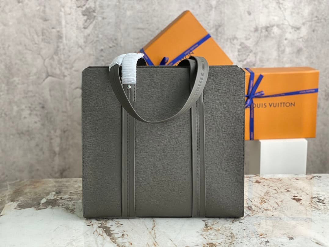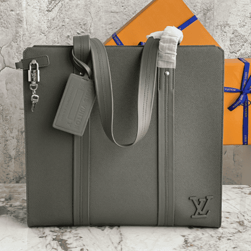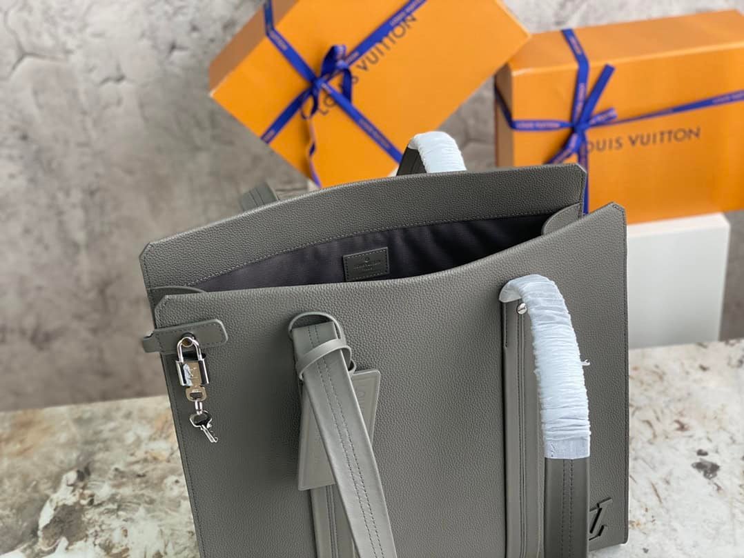 full leather briefcase series TOTE bag The new LV Aerogram Tote bag is made of soft and delicate grained calfskin, subtly embellished with leather labels and metal LV letters, which together with the minimalist design attract trendy attention. Men’s shopping bag with full leather tag and big logo.