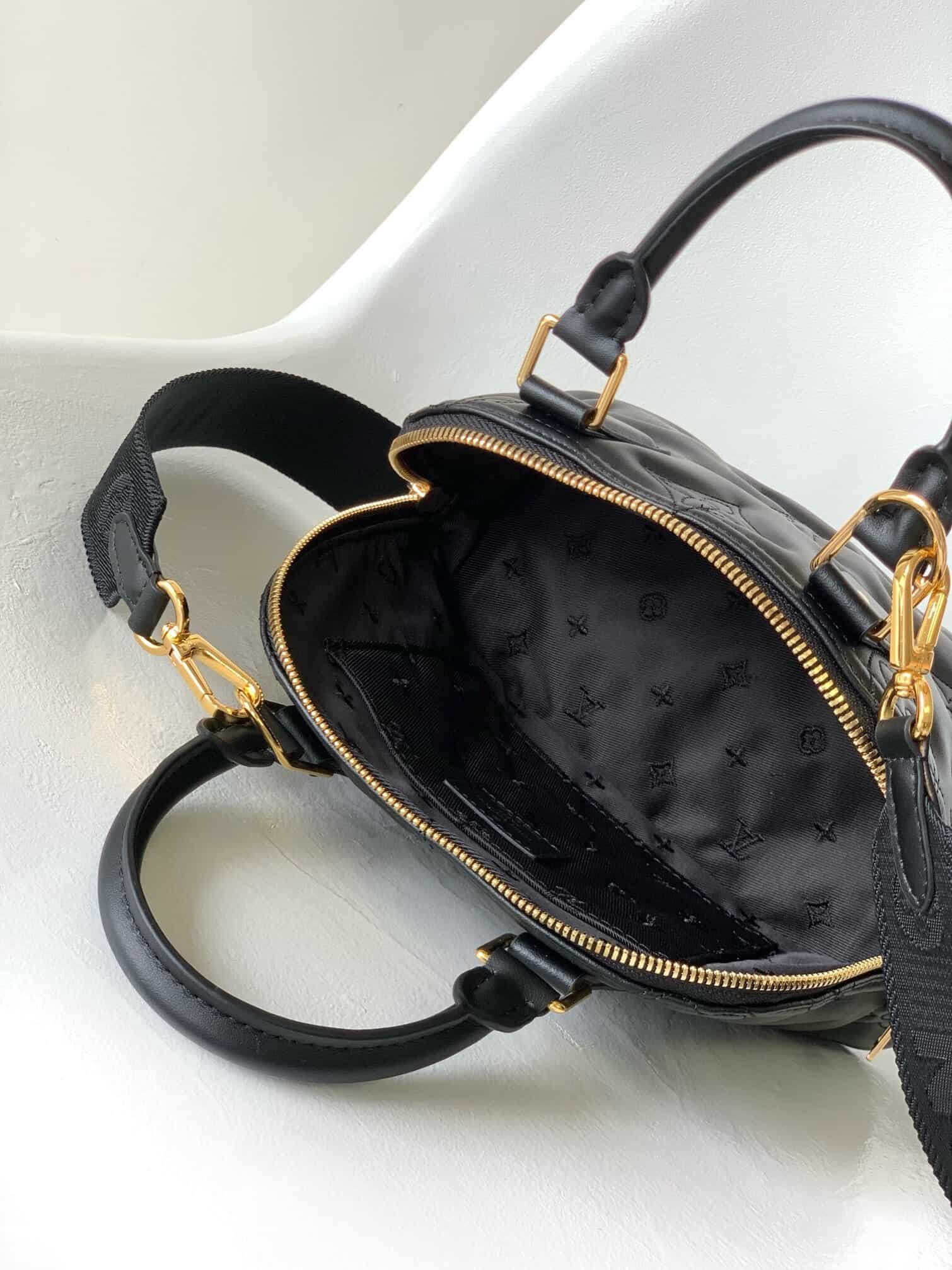 This Alma BB handbag inherits the essence of Art Deco style in the 1930s. It is a rich quilted calfskin embroidered Monogram pattern, with a rolled leather handle and a detachable and adjustable shoulder strap. It can be carried cross-body Convert as you like.