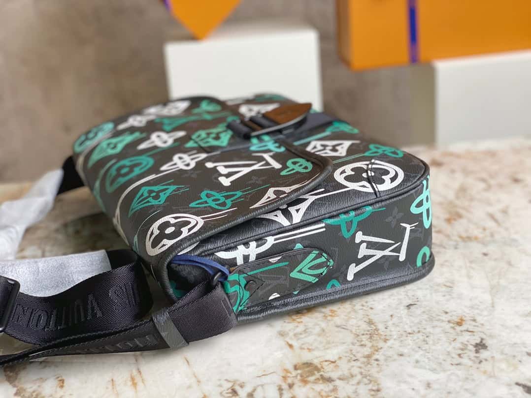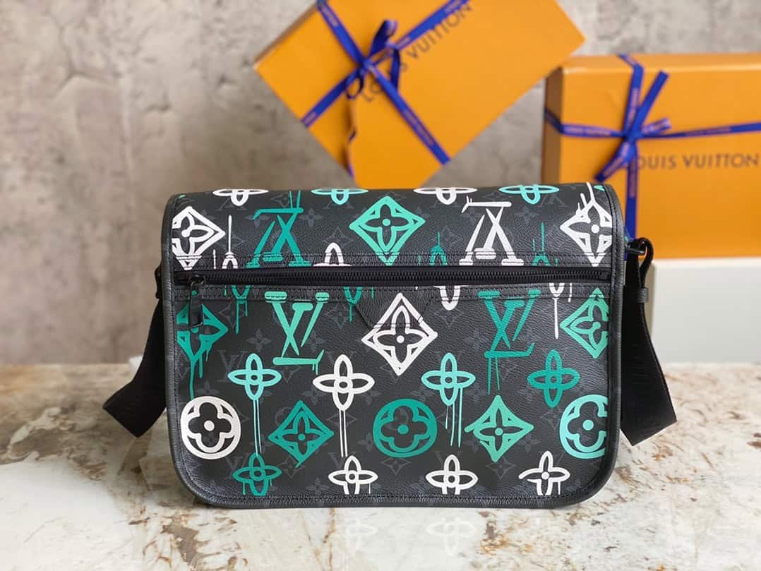 Printed men’s bag messenger bag series ARCHY medium messenger bag This Archy medium messenger bag is swayed with graffiti art on Monogram Eclipse canvas, redrawing the Monogram pattern, with reinforced corners and leather trim. The badge-shaped closure adds a modern twist, and the zipped rear pocket provides easy access to essentials.