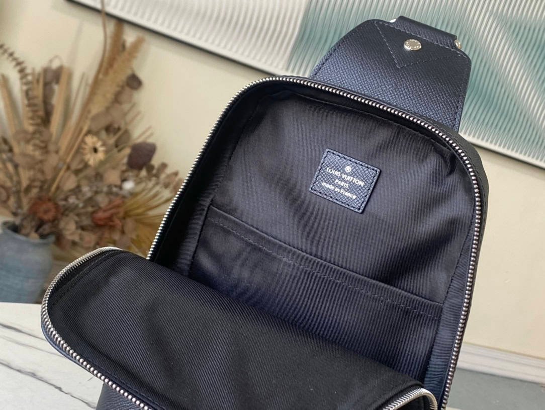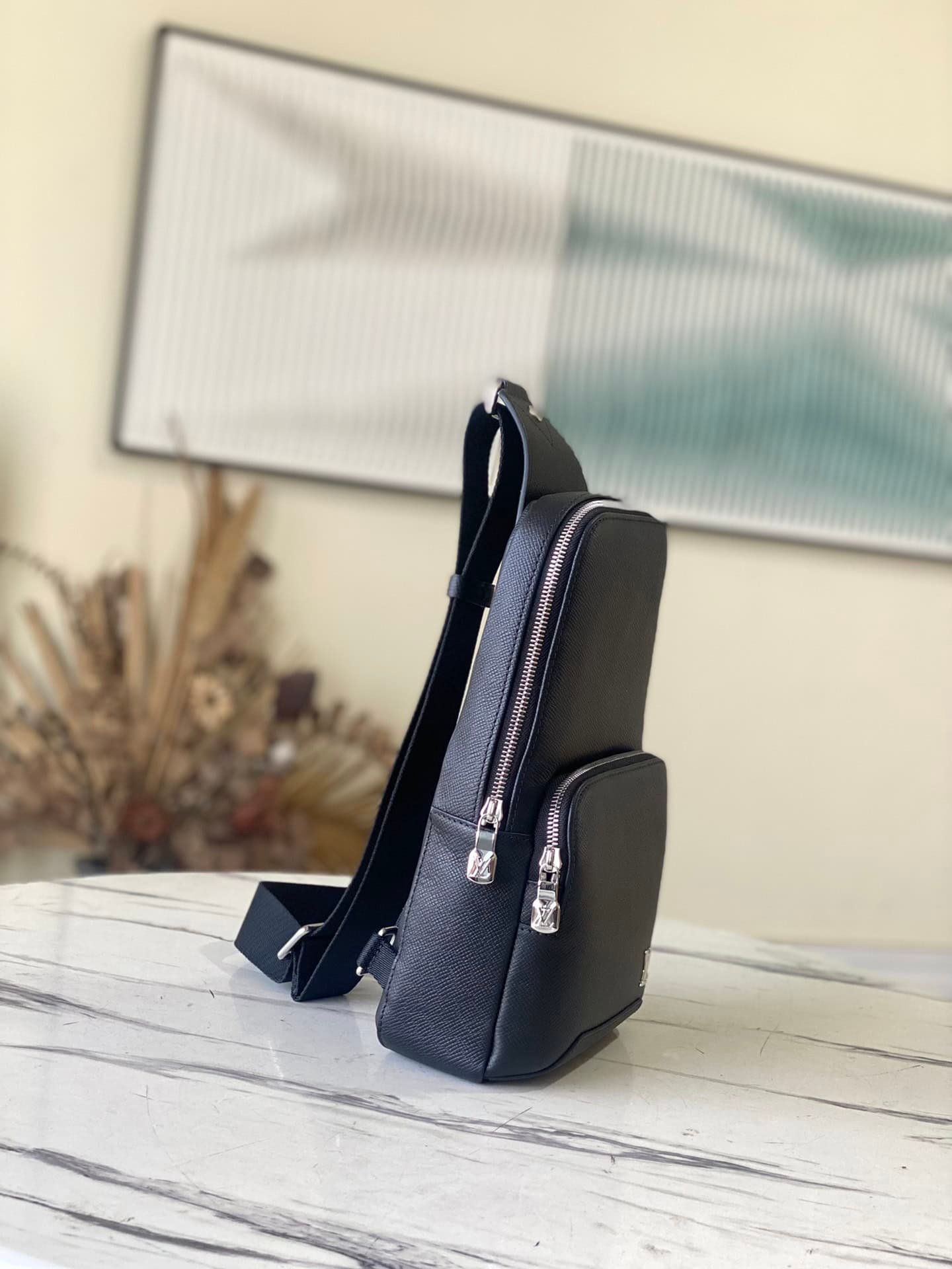 Avenue shoulder bag is made of Taïga leather to outline the iconic lines, embellished with letters, and the front zipper pocket and inner patch pocket are integrated into functionality, providing a trendy alternative to traditional backpacks. Adjustable shoulder strap and hook buckle for left and right carrying.