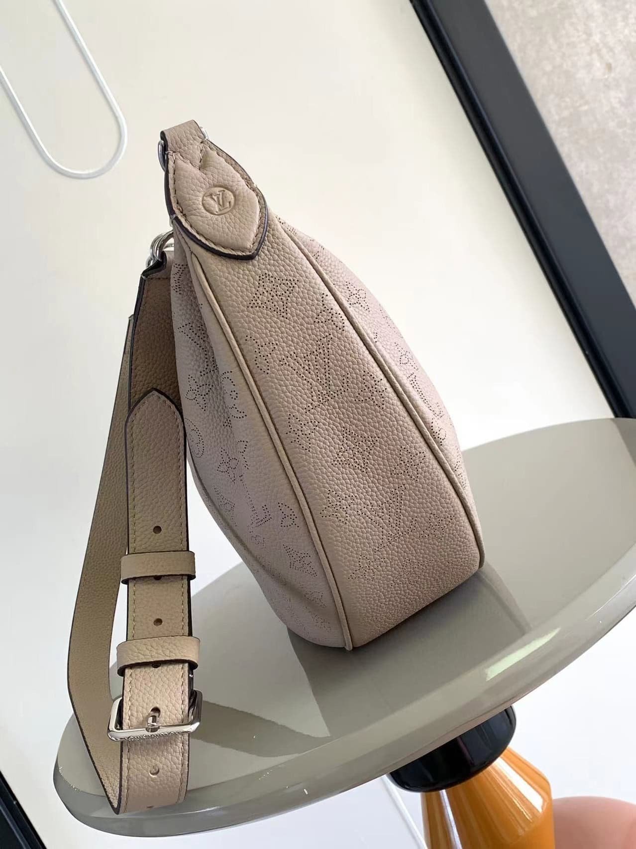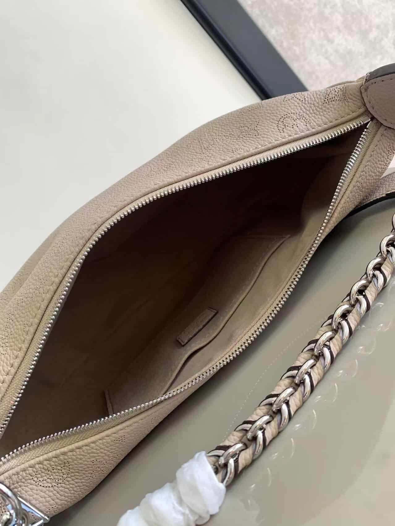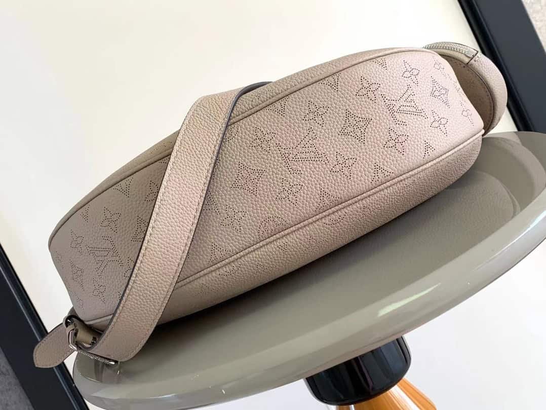 The Baia medium handbag is made of soft and draped perforated calf leather and joins the Mahina collection in a comfortable and close-fitting half-moon silhouette. The leather and metal braided handles combined with the long adjustable shoulder strap allow for shoulder or cross-body carry options, and the coin purse is rich in details. Detailed features: 36x 23x 8 cm. (length x height x width)