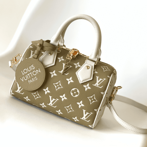 Speedy pillow bag Bandoulière 20 handbag is made of Monogram Empreinte calf leather, the surface pattern has been embossed and printed successively, and it presents an eye-catching look together with the colored leather on the side. Signature construction and rolled handles articulate the brand’s travel heritage, while Paris signature leather nameplates are rich in detail.