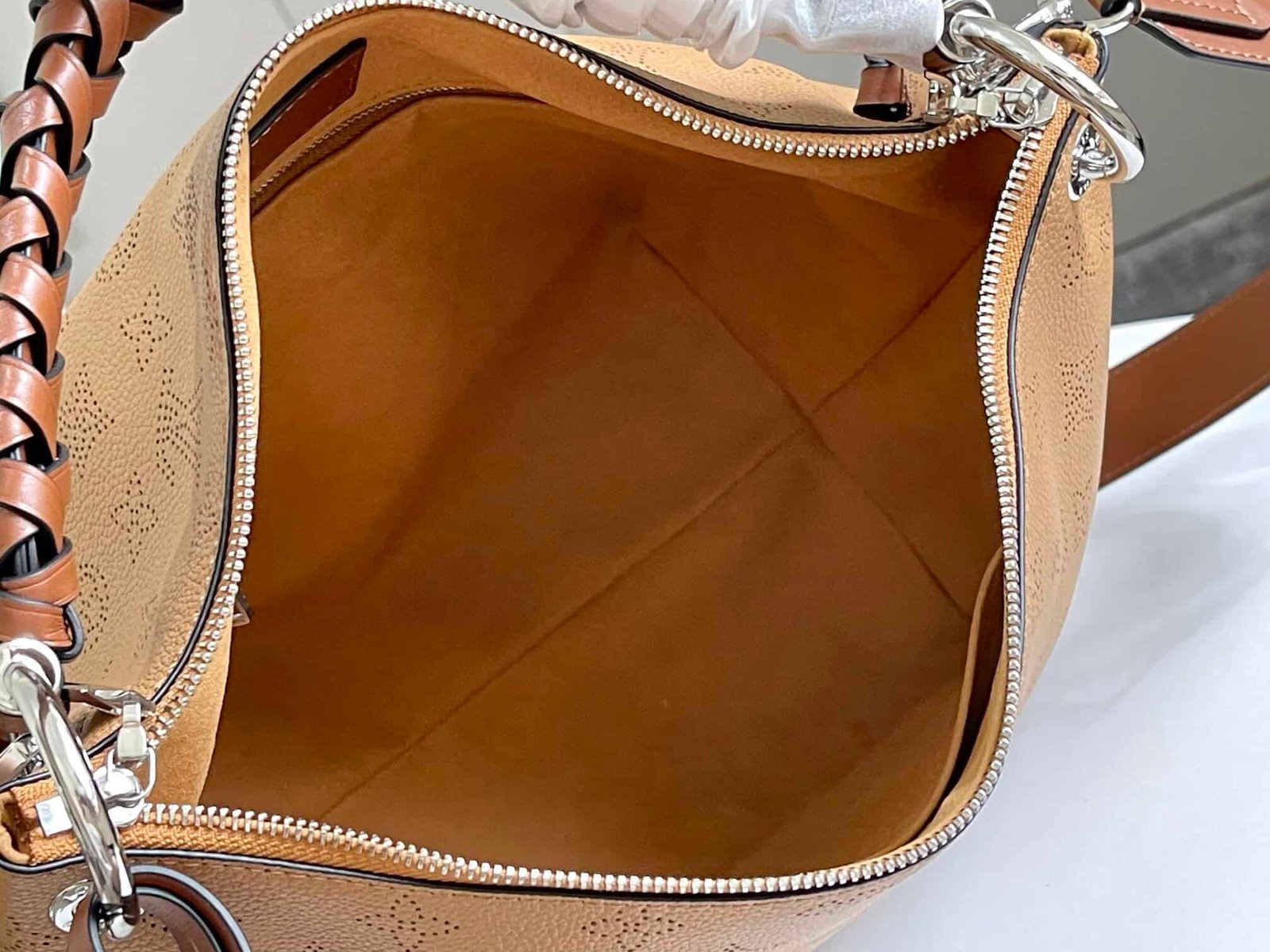 The Beaubourg Hobo medium handbag is made of Monogram perforated calfskin, and then the hand-dyed edge is applied to the woven leather handle with a unique meaning. Leather zipper pulls and large LV letters reveal brand style, and the detachable wide leather shoulder strap realizes soft design and comfortable travel.