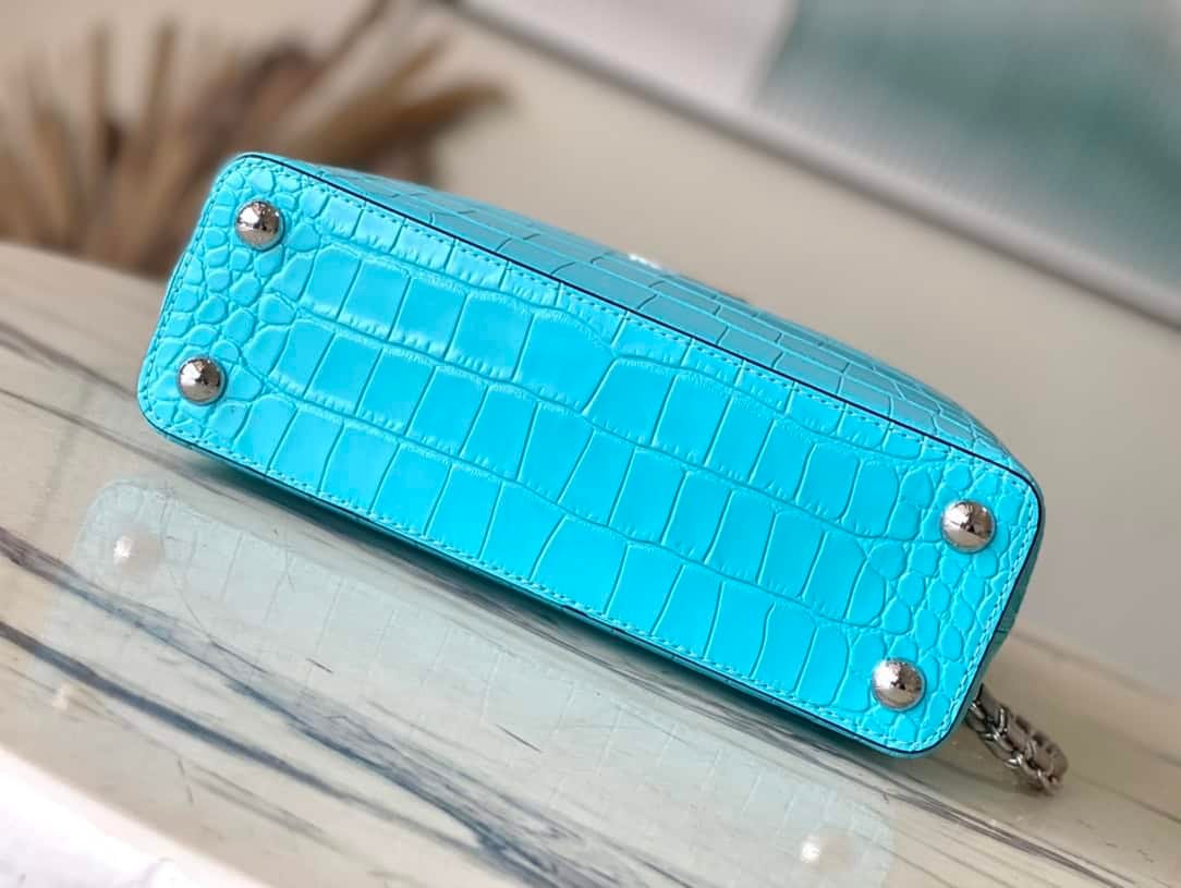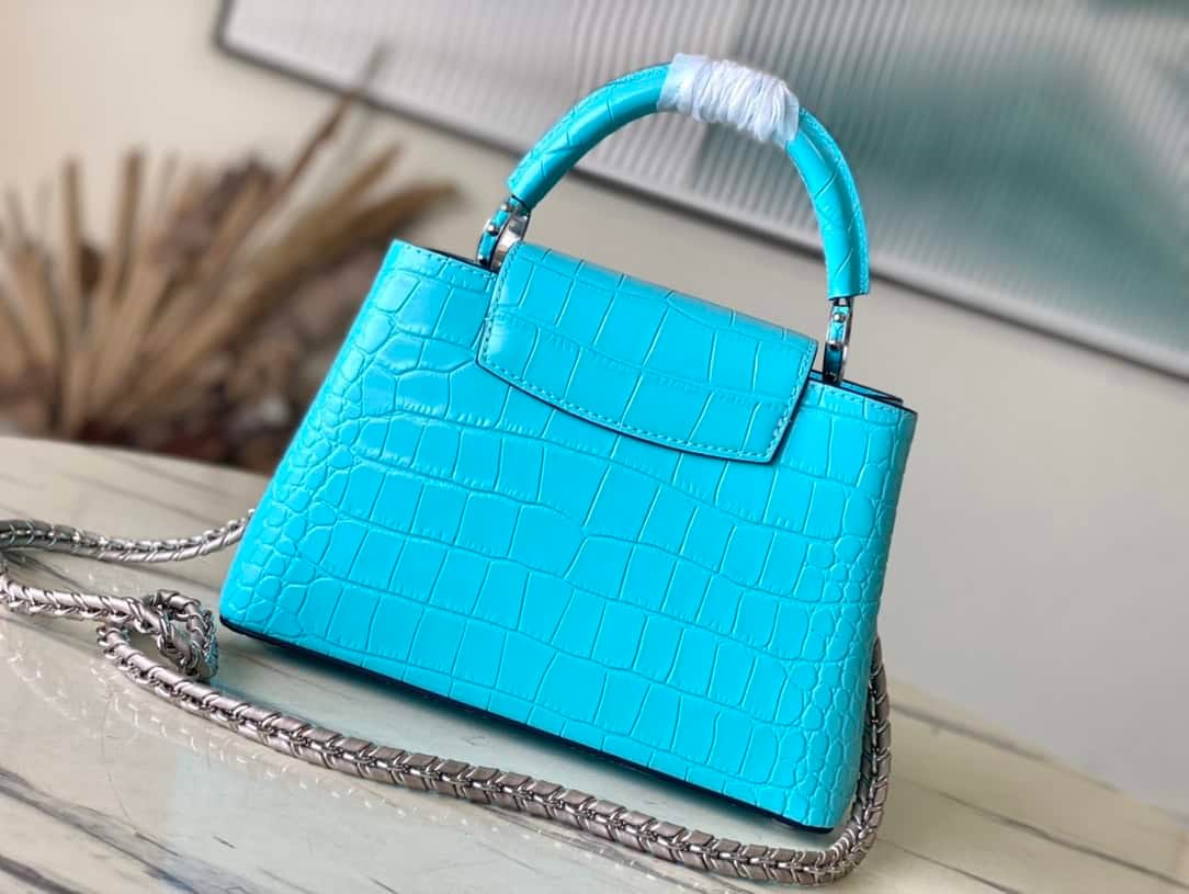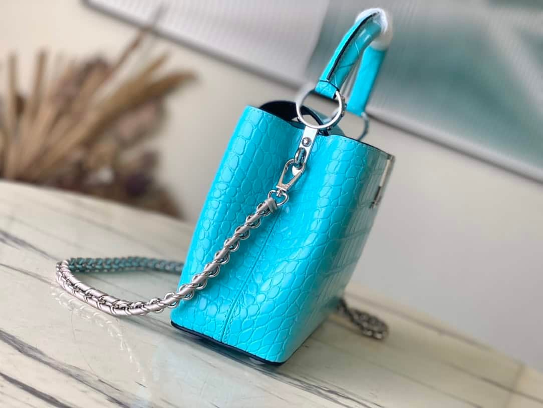 The noble crocodile leather pattern has been polished and shines charmingly. The luxurious goatskin lining and sparkling metal accessories. The unique Capucines Yhl cover can be stored in the bag for display. The letter logo can be turned outwards to display the Monogram Flower pattern.