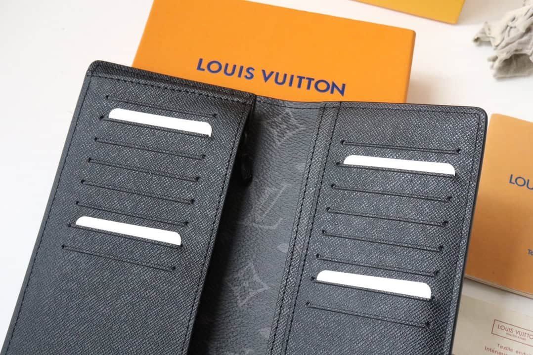 The Brazza Wallet is a larger men’s wallet that keeps things organized. The outer layer is made of Epi embossed leather, while the inner layer of the wallet is smooth leather with Monogram Eclipse canvas for an elegant and masculine style. This Brazza wallet features a large zipped compartment for small change and features multiple slots for credit cards and bills.