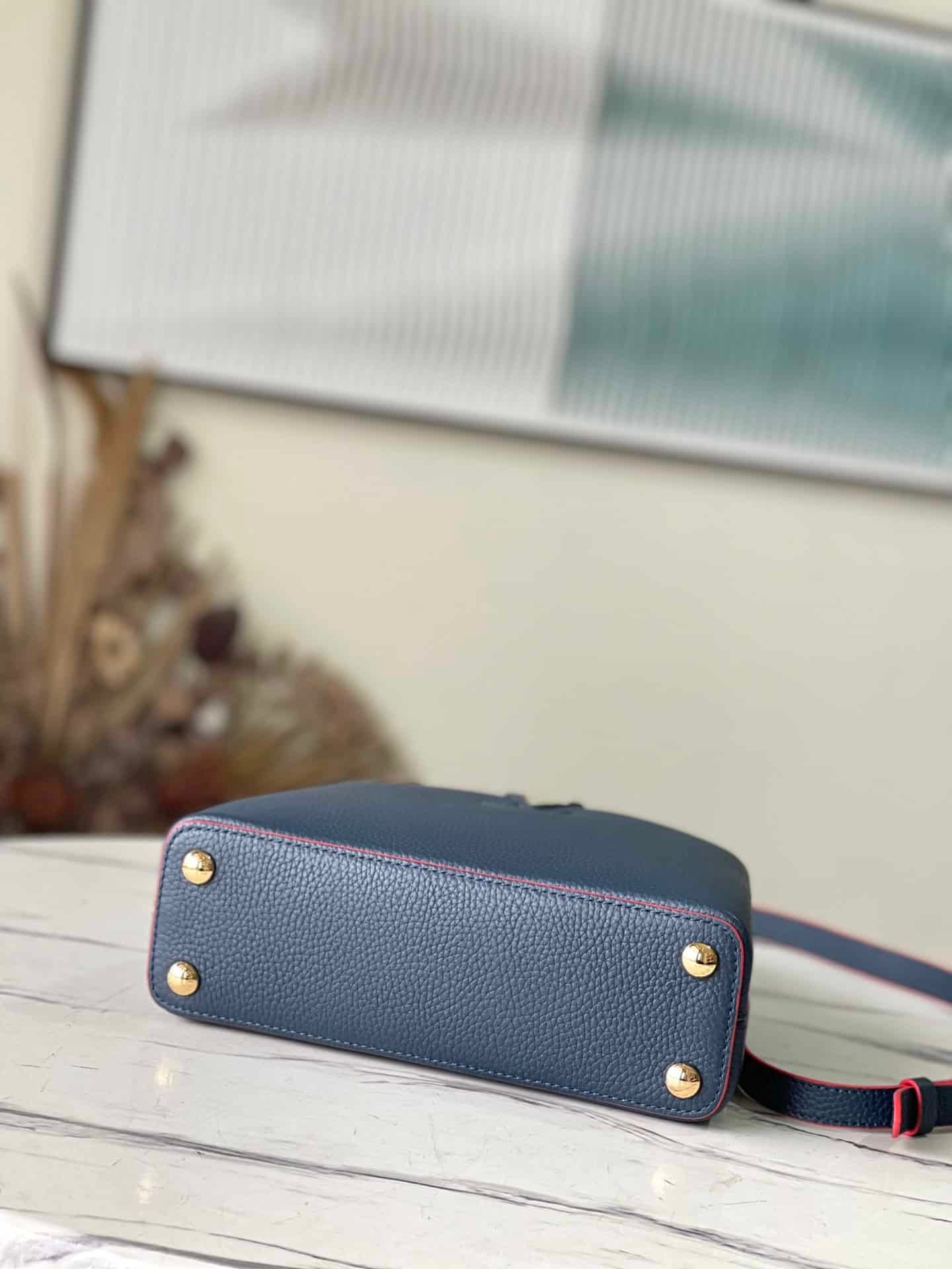 Navy blue gold buckle The first store opened on Capuchin Street in Paris. Capucines handbags are as enduring as the brand and can bring a sense of fashion and sophistication to any look. Full-grain Taurillon leather is combined with rare wide-grain python leather to create a luxurious handbag. Various traditional details are the highlights of the handbag: initials, unique side rings, and delicate Monogram flowers on the flap. Equipped with a top handle, detachable strap and unique cover, it can be carried in a variety of styles to suit different.
