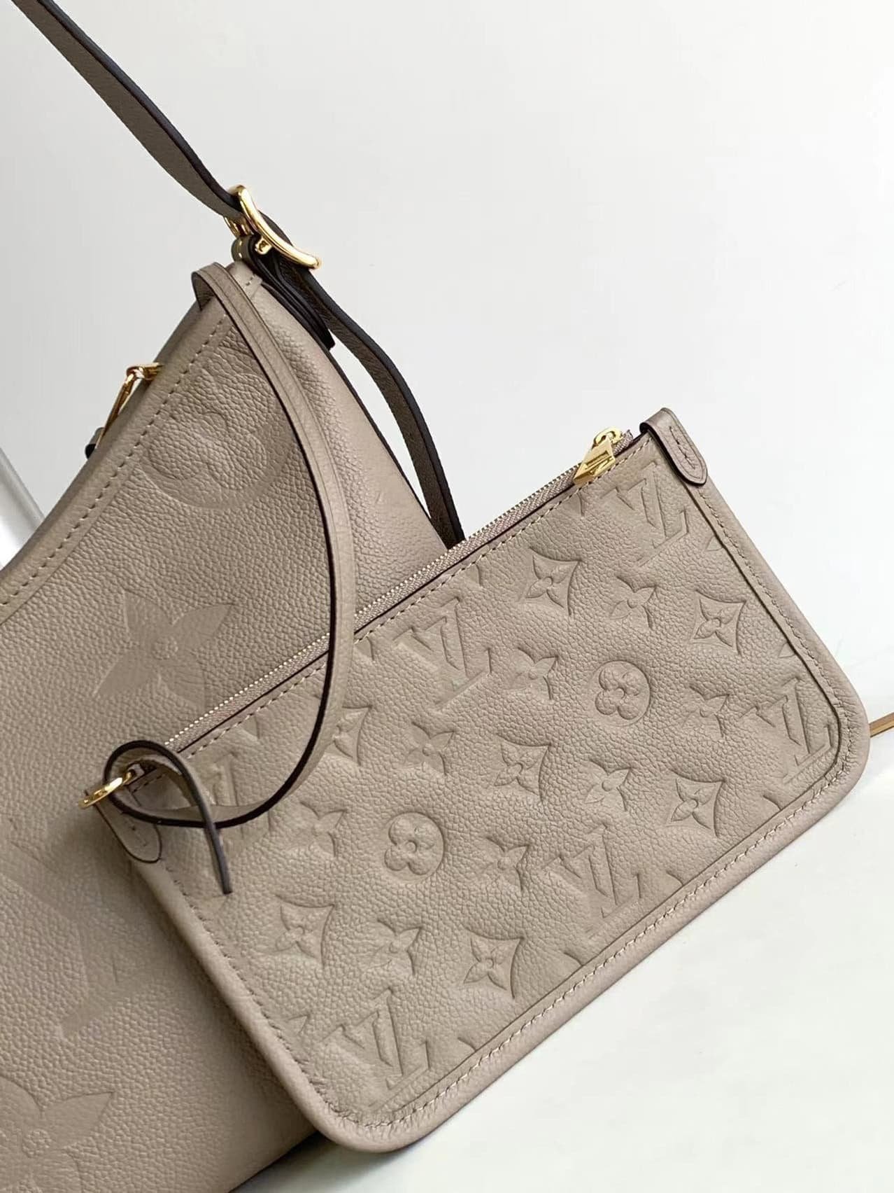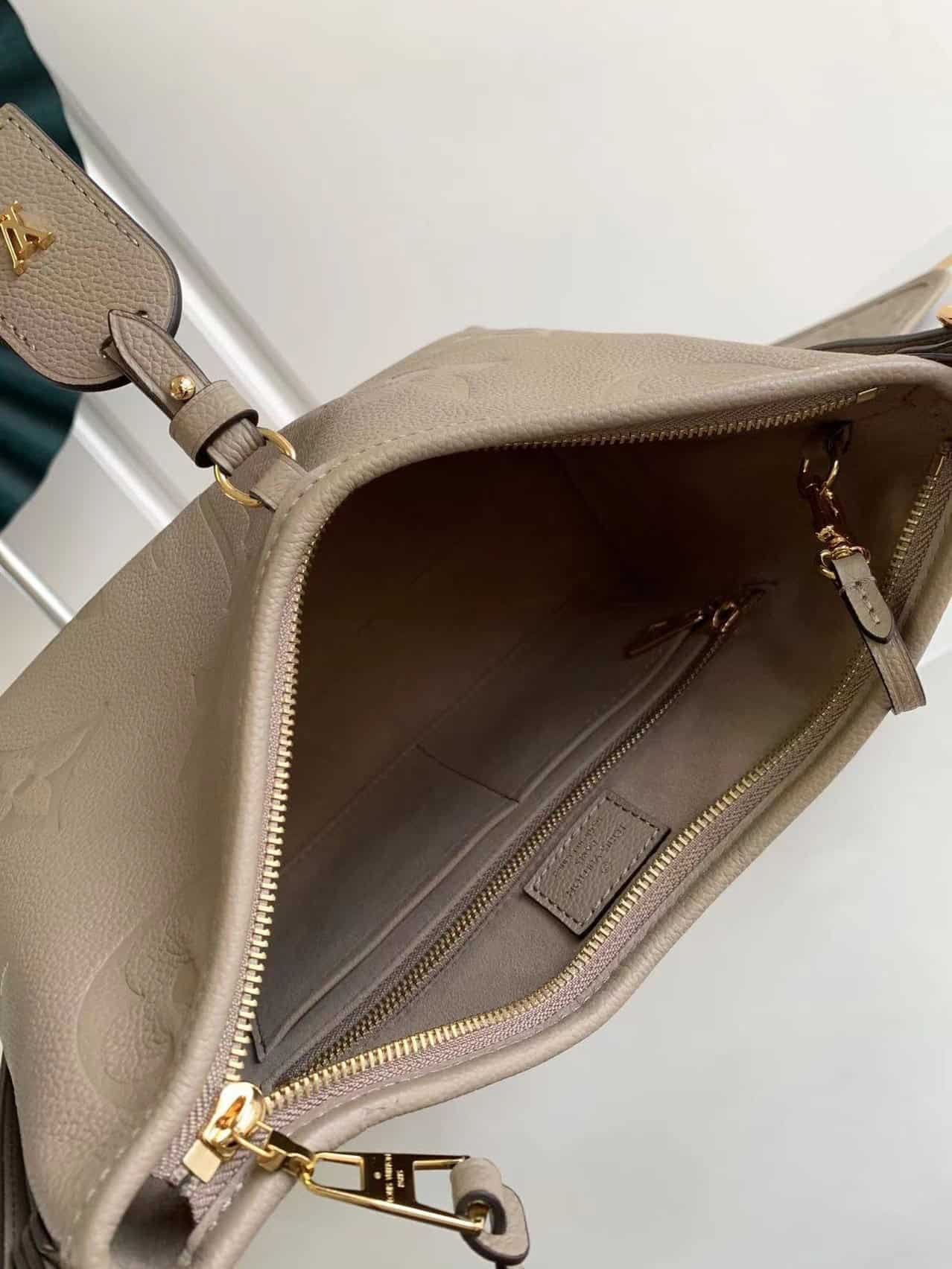 Matching details The CarryAll small handbag is made of Monogram Empreinte embossed leather, with ample configuration and a neat inner layer, and the large inner bag adds functional elements. The matching Monogram embossed zip clutch is secured by a leather strap. A personal companion for urban life.