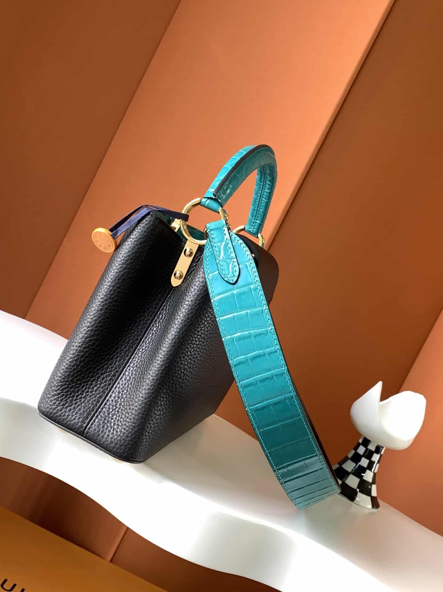 The new Caucine crocodile handle shoulder strap is color-blocked. When Nordic bull leather meets the precious crocodile pattern, it is an excellent expression of heartbeat and taste.