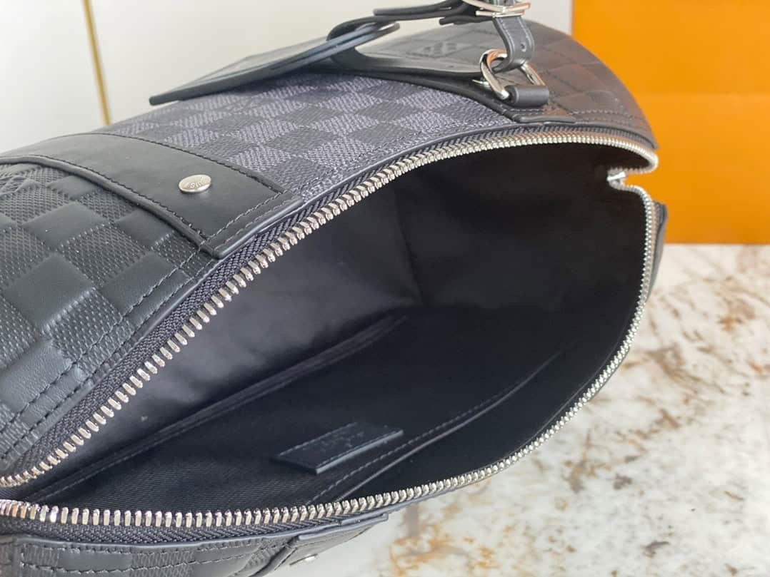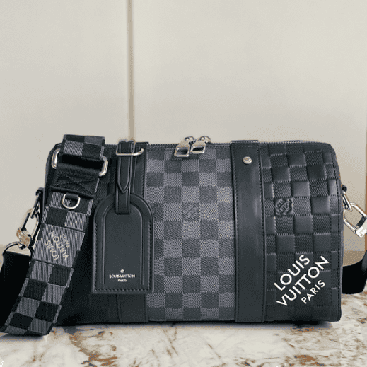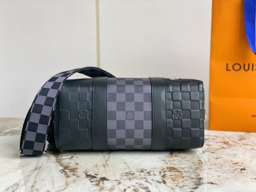 Heiger men’s bag pillow bag series CITY KEEPALL handbag This City Keepall handbag combines Damier Infini embossed leather and Damier Graphite canvas to present the concise lines of the checkerboard pattern. The Damier motif is embellished with wide jacquard shoulder straps, richly detailed diagonally to the Louis Vuitton Paris signature.