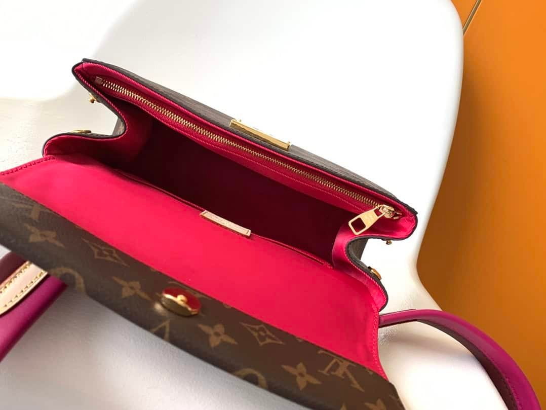 This Cluny BB handbag is made of classic Monogram canvas, designed for busy life. The wide opening is framed by a trim interior for easy access. The magnetic flap and zipped interior pocket keep items safe and secure. The colorful leather shoulder strap adds vigor to the crossbody, and the top handle allows for elegant carrying.