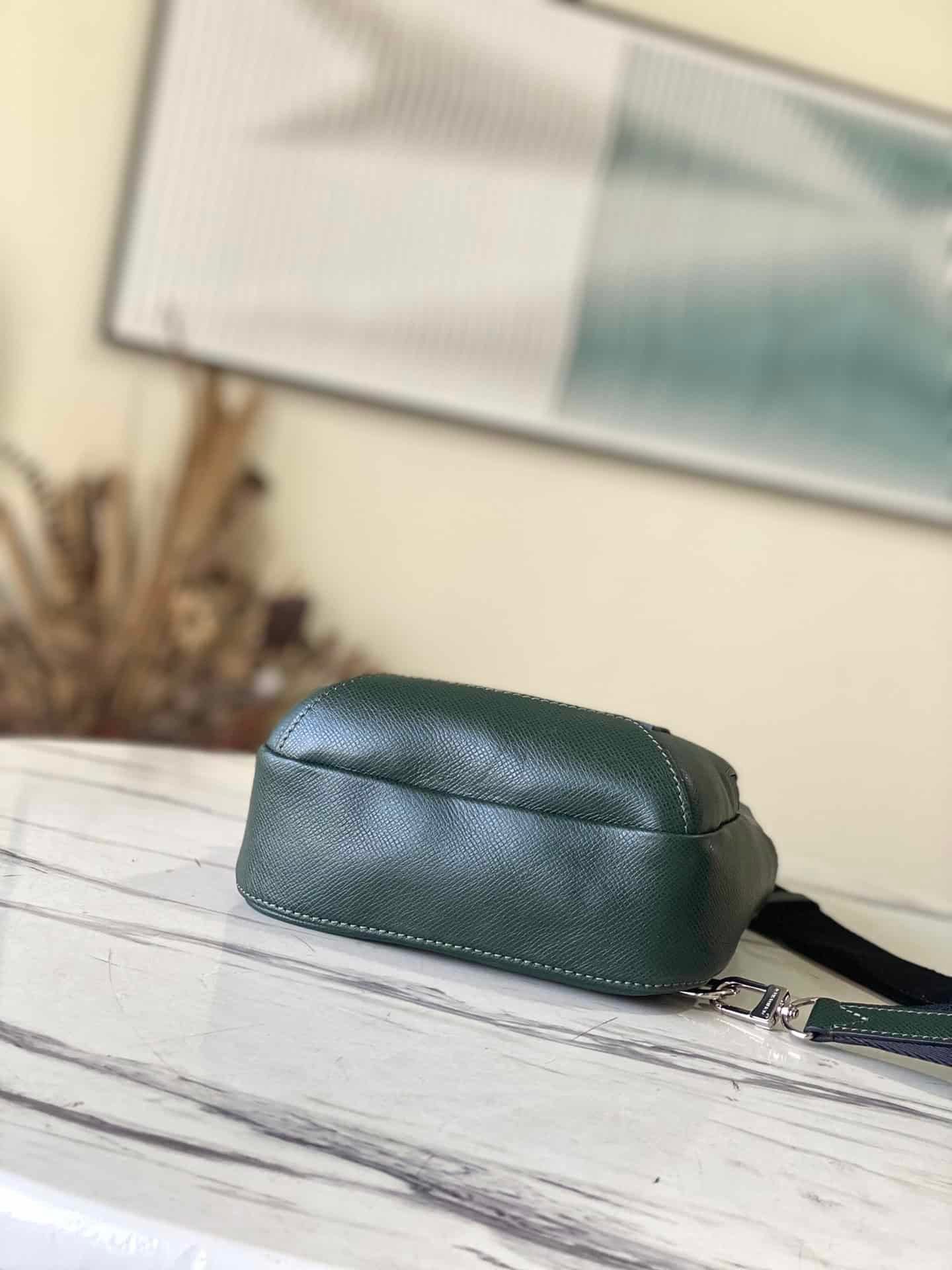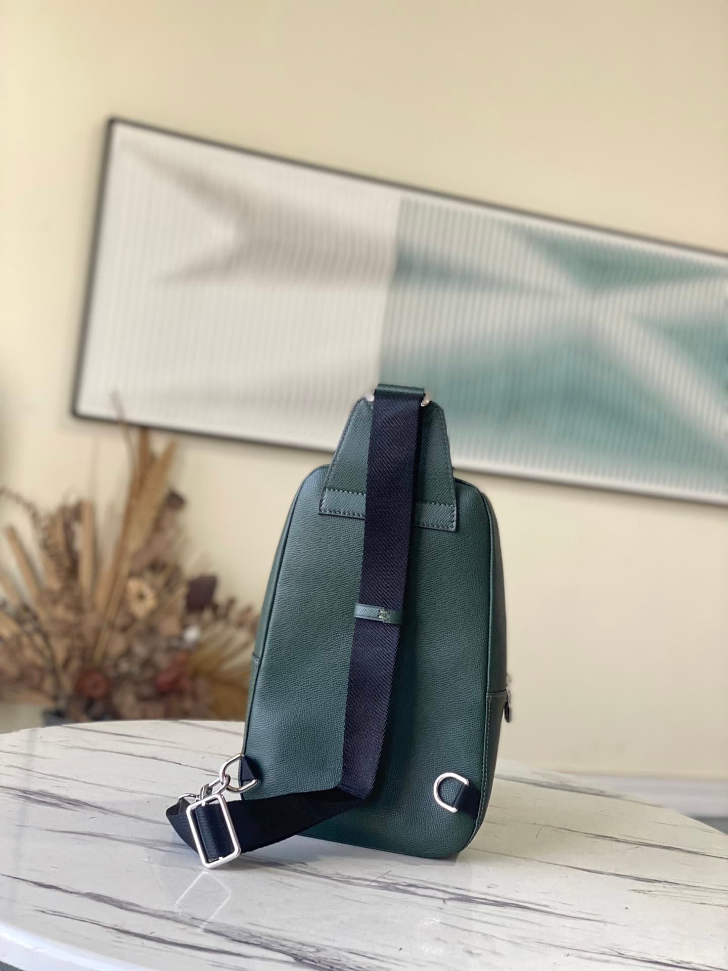Green new cross-pattern Avenue shoulder bag uses Taïga leather to outline the iconic lines, embellished with LV letters, and has a front zipper pocket and inner patch pockets that integrate functionality, providing a trendy alternative to traditional backpacks. Adjustable shoulder strap and hook buckle for left and right carrying.