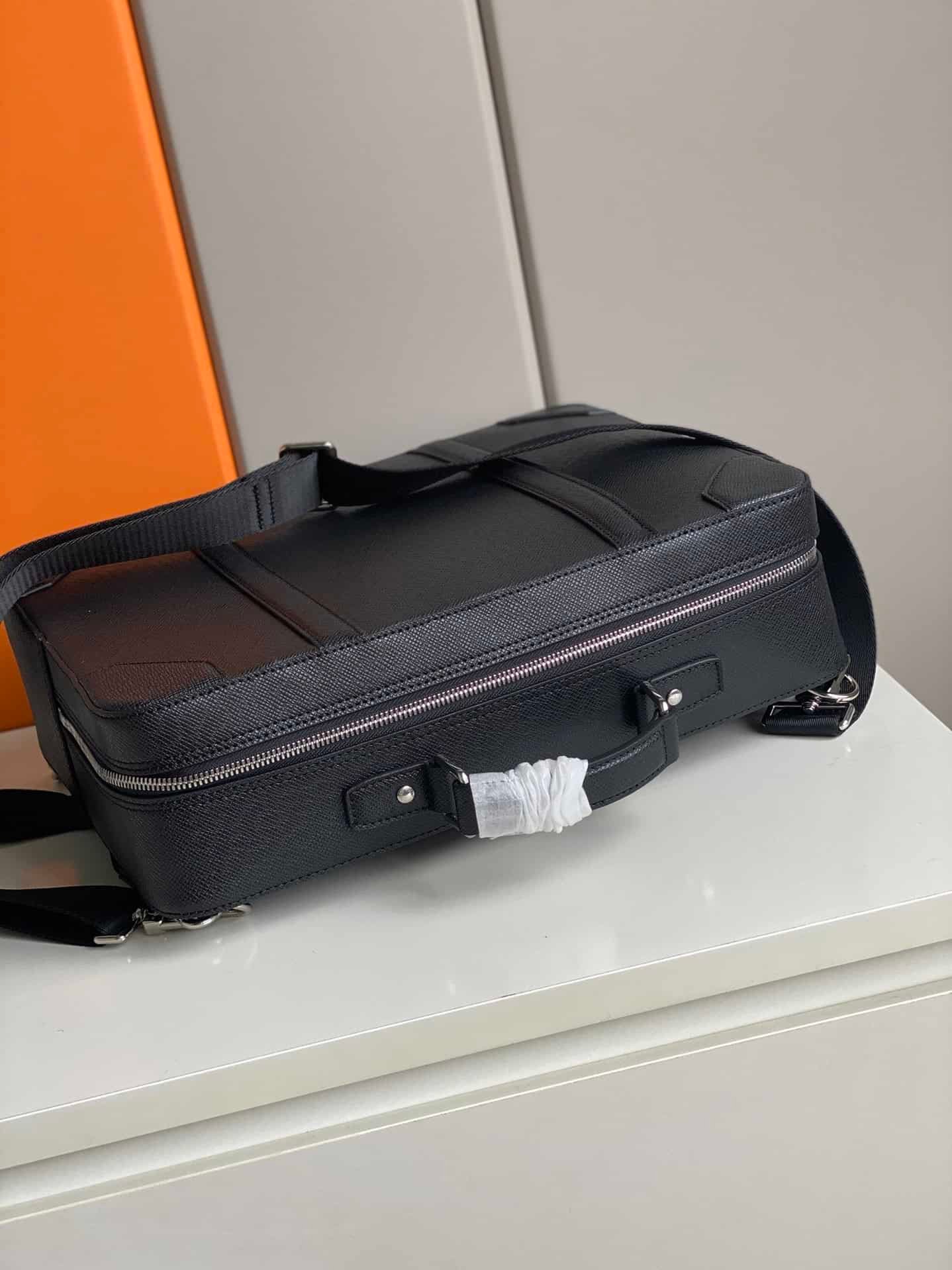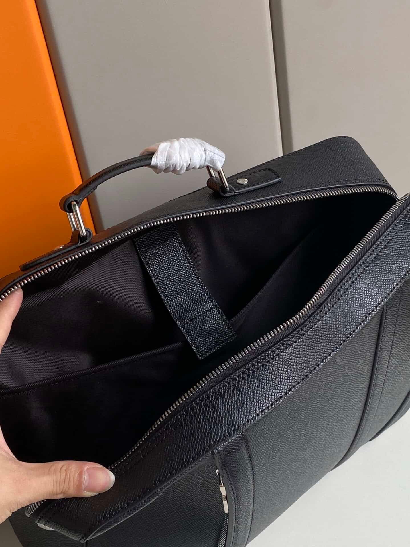 Cross pattern full leather This Briefcase backpack has ample space, modern and practical, suitable for men to carry on business trips. Crafted from supple Taiga leather with hardcase-style reinforced corners, it can be worn cross-body or over the shoulder. With a foldable handle, it can be used as a briefcase; the strap and handle can be neatly embedded in the zippered compartment, so it can also be used as a backpack.