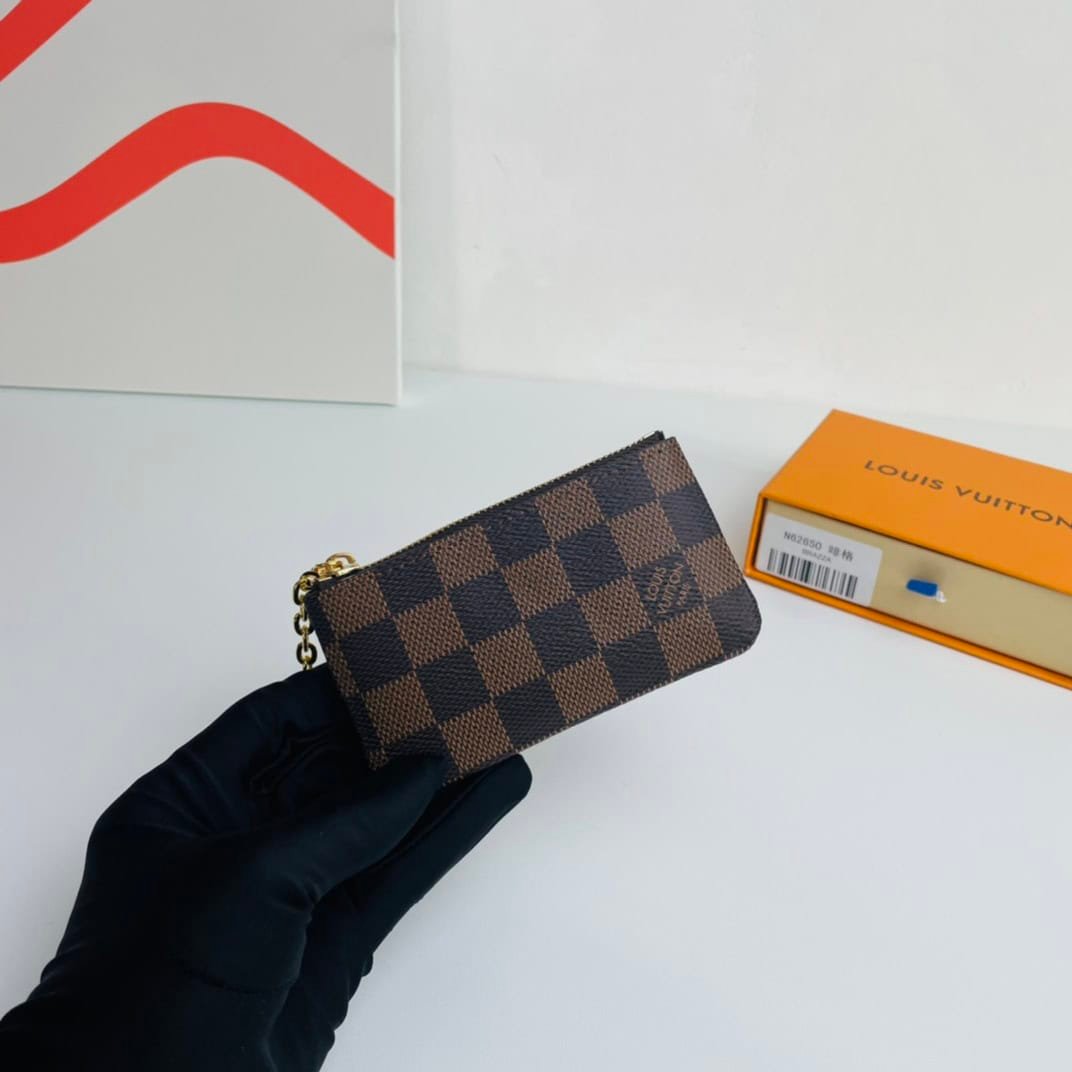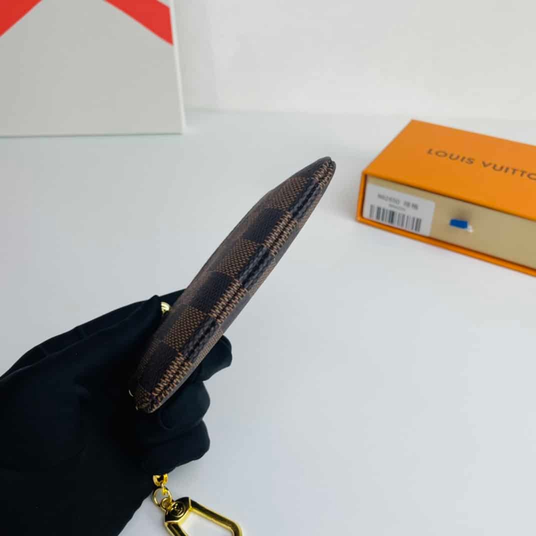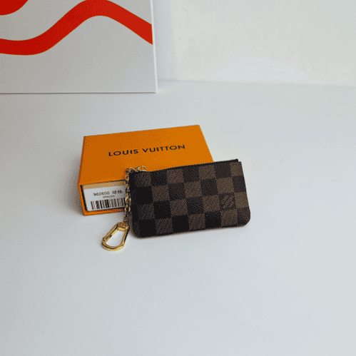 This Damier canvas pouch holds loose change and keys and slips easily into a handbag or coat pocket.