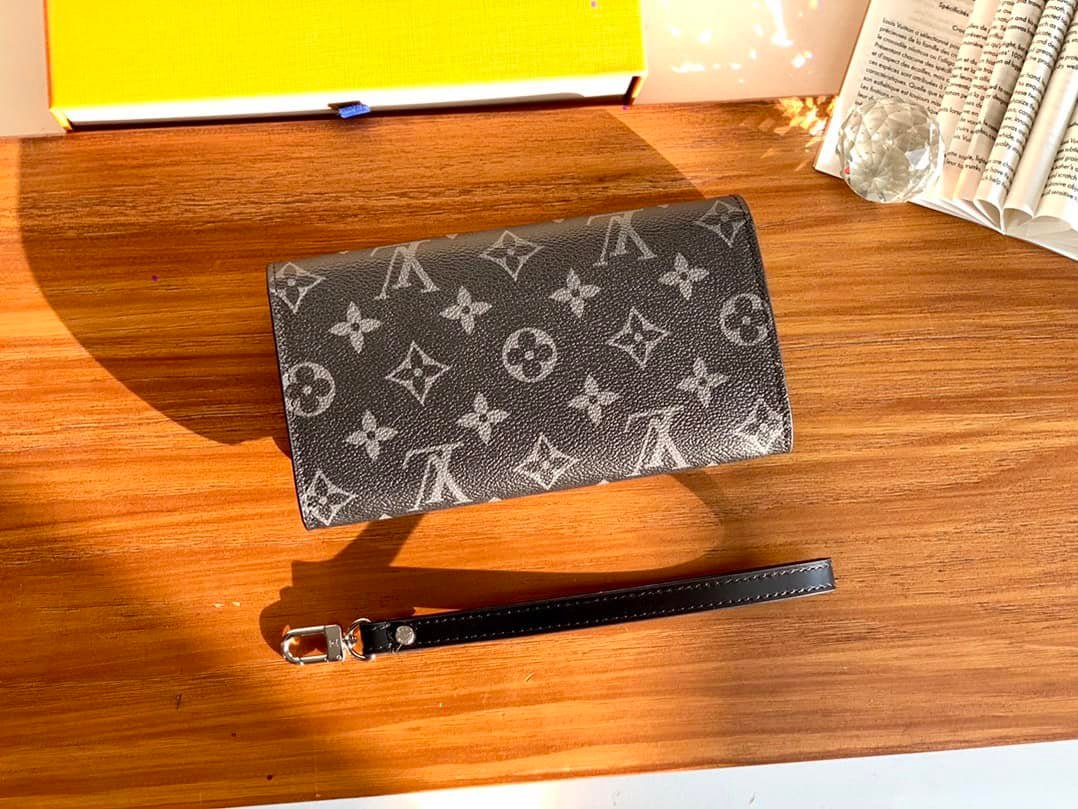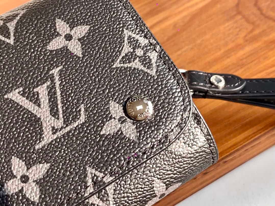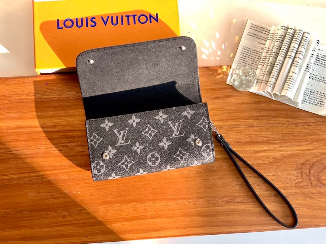 MONOGRA’s spacious snap buttons, rich internal and external pockets and interior bring great practicality. The Kasai clutch made of the iconic Damier Graphite coated canvas can be clipped on the inside of the arm or tied to the wrist through the strap! The strap can be worn with a press buckle.