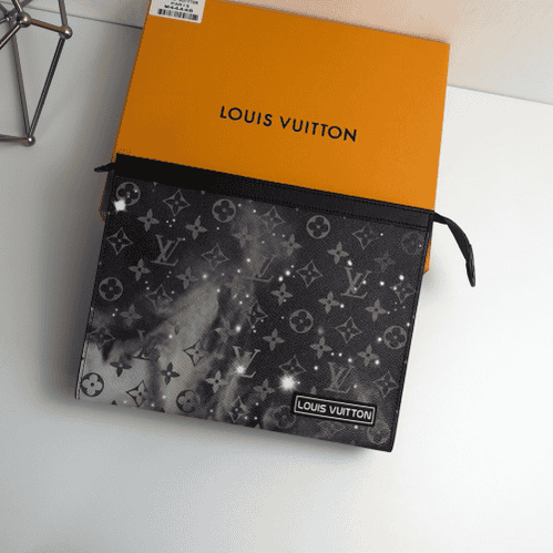 Turning his eyes to the bright and vast expanse of space, he redesigned the Pochette Voyage handbag in the 2019 spring summer pre-show series. The classic Monogram pattern complements the dazzling galaxy and the dying sun. Compact enough to hold everyday essentials, the pouch can be held in hand or stored in a larger bag.