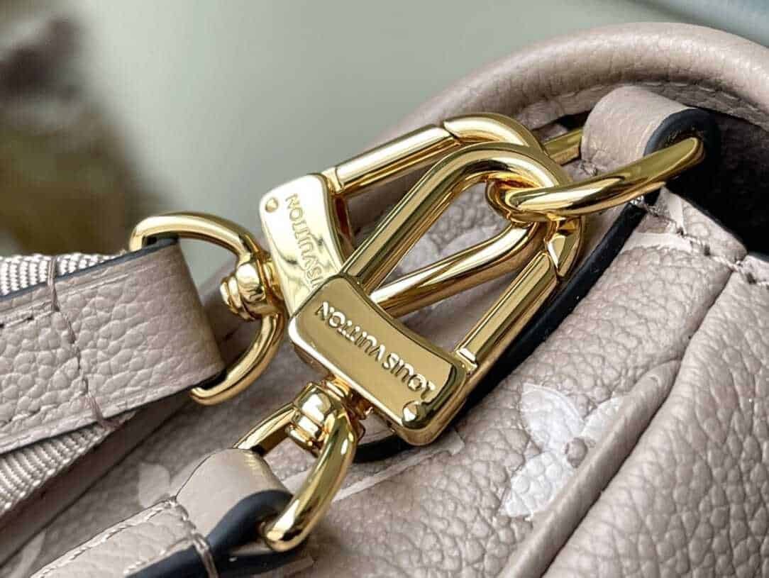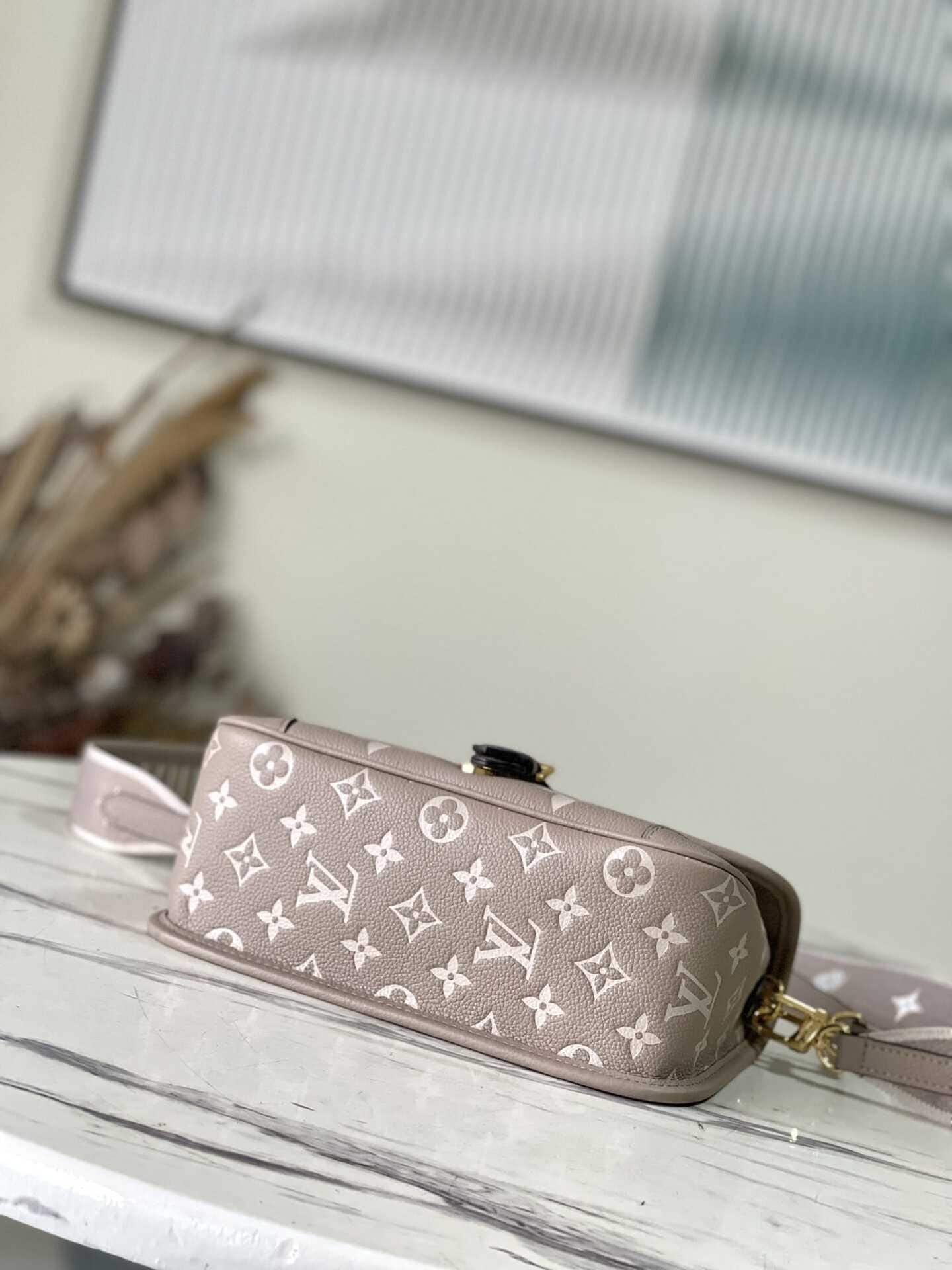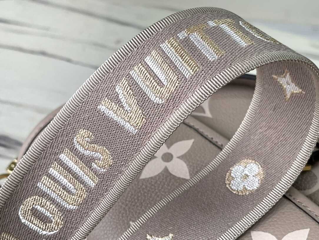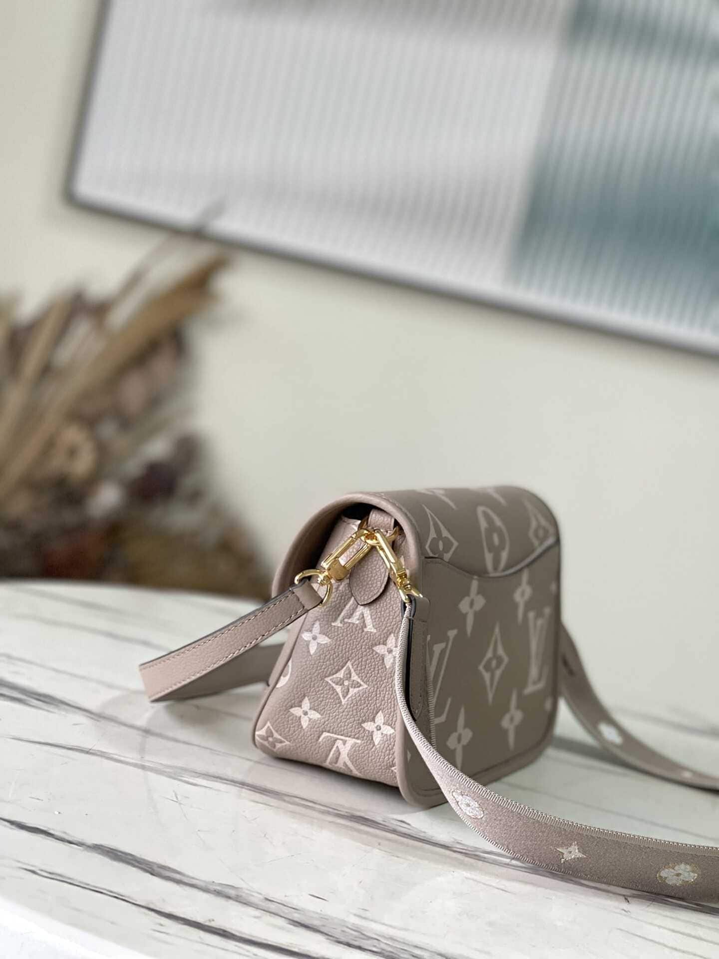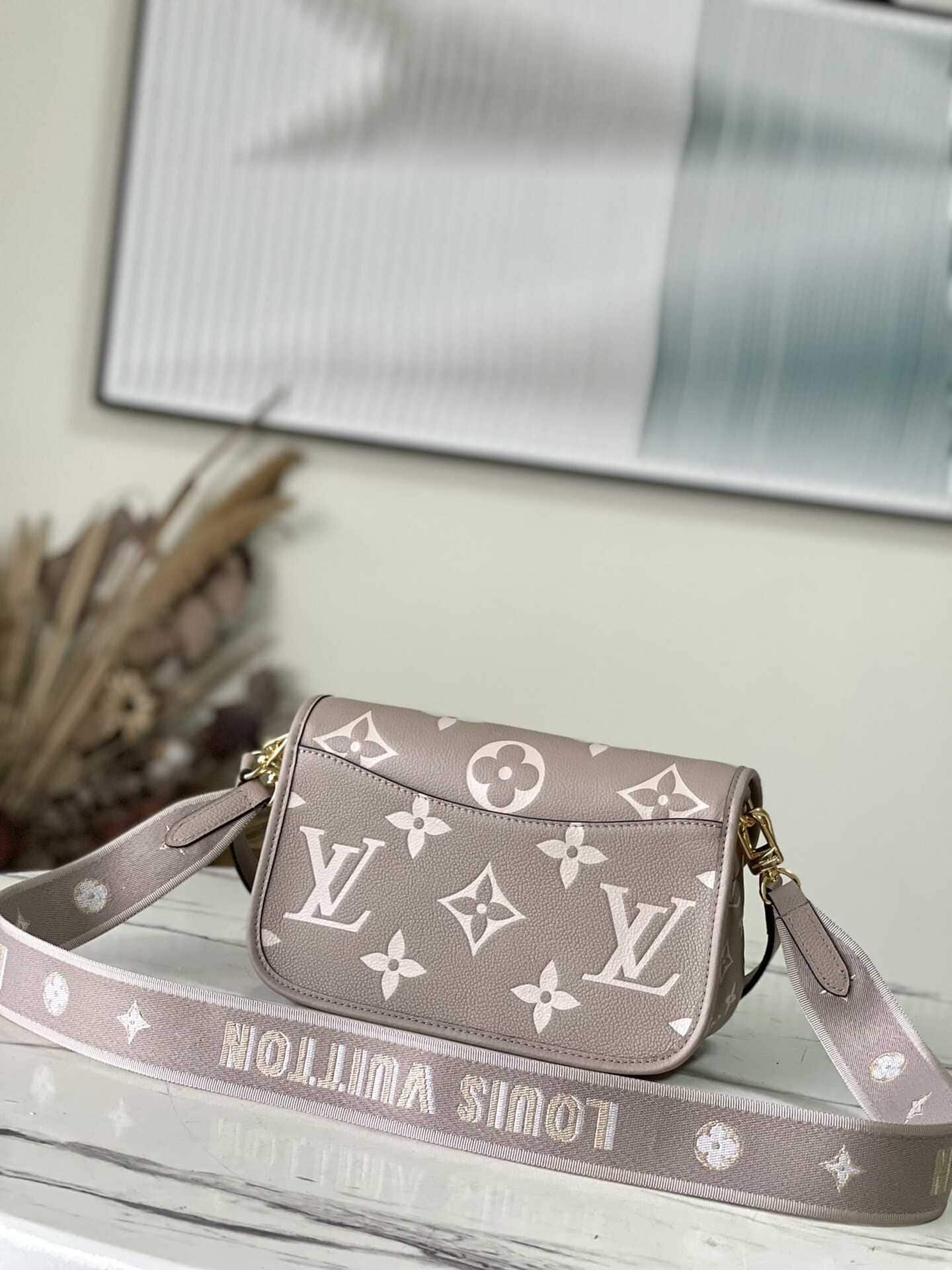 Apricot silk screen This Diane handbag is made of classic Monogram Empreinte embossed leather. The brand logo is woven into the detachable wide jacquard shoulder strap. Elegant or sporty.