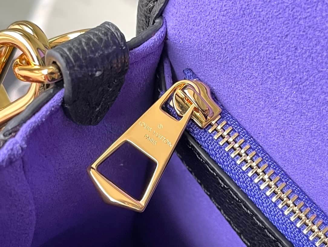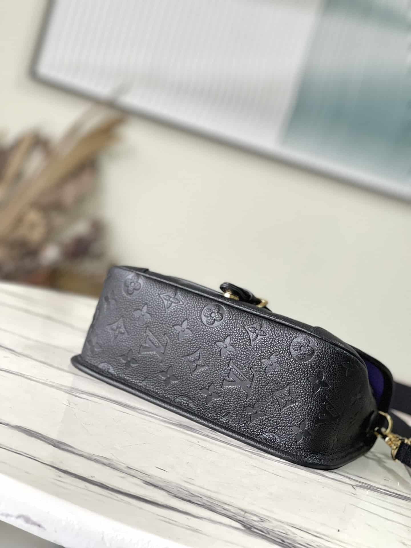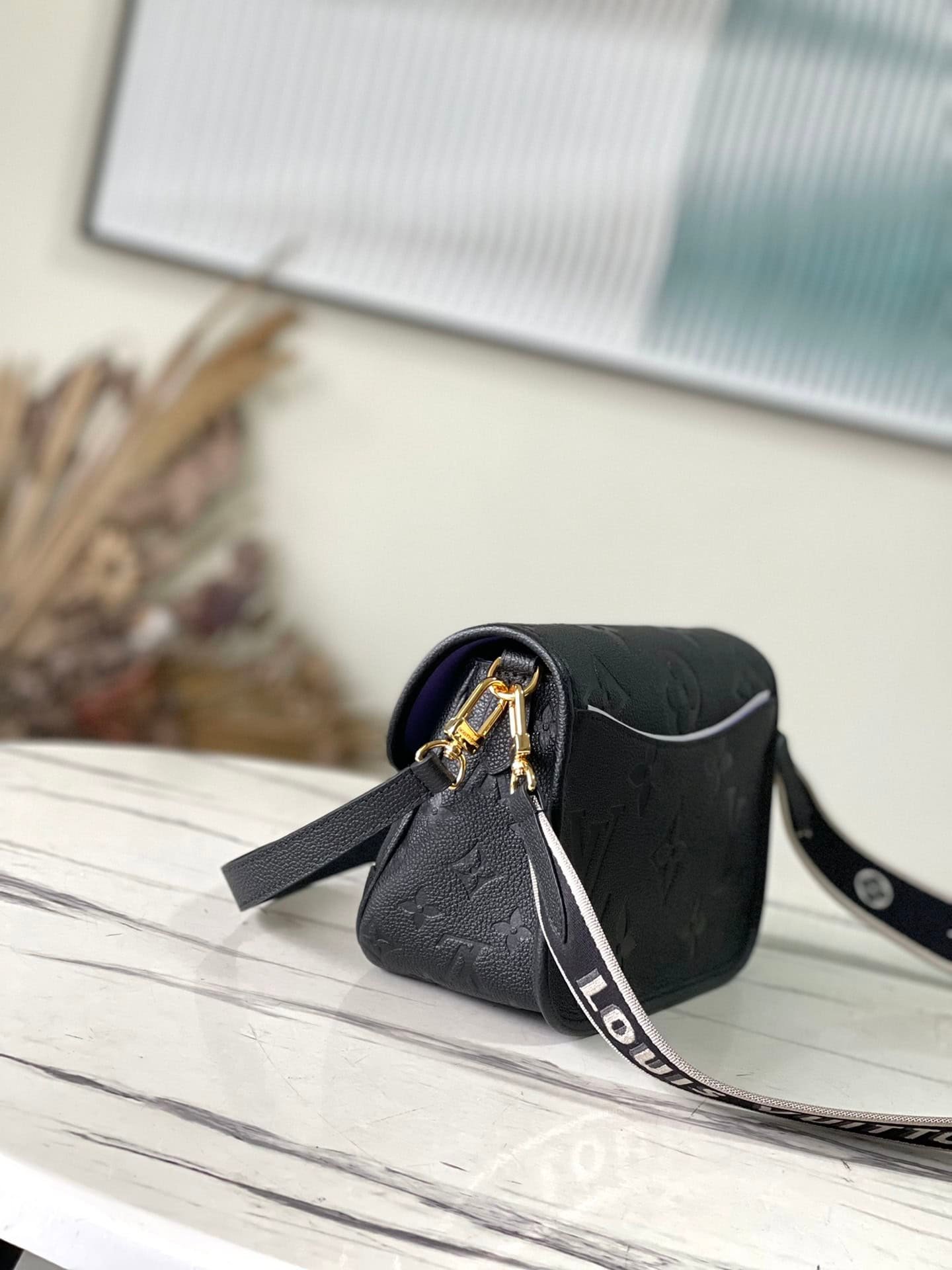 This Diane handbag is made of Louis Vuitton’s classic Monogram Empreinte embossed leather. The brand logo is woven into the detachable wide jacquard shoulder strap. In addition to the detachable leather shoulder strap, there is also a crossbody option for a flexible fit. Sophisticated or sporty.