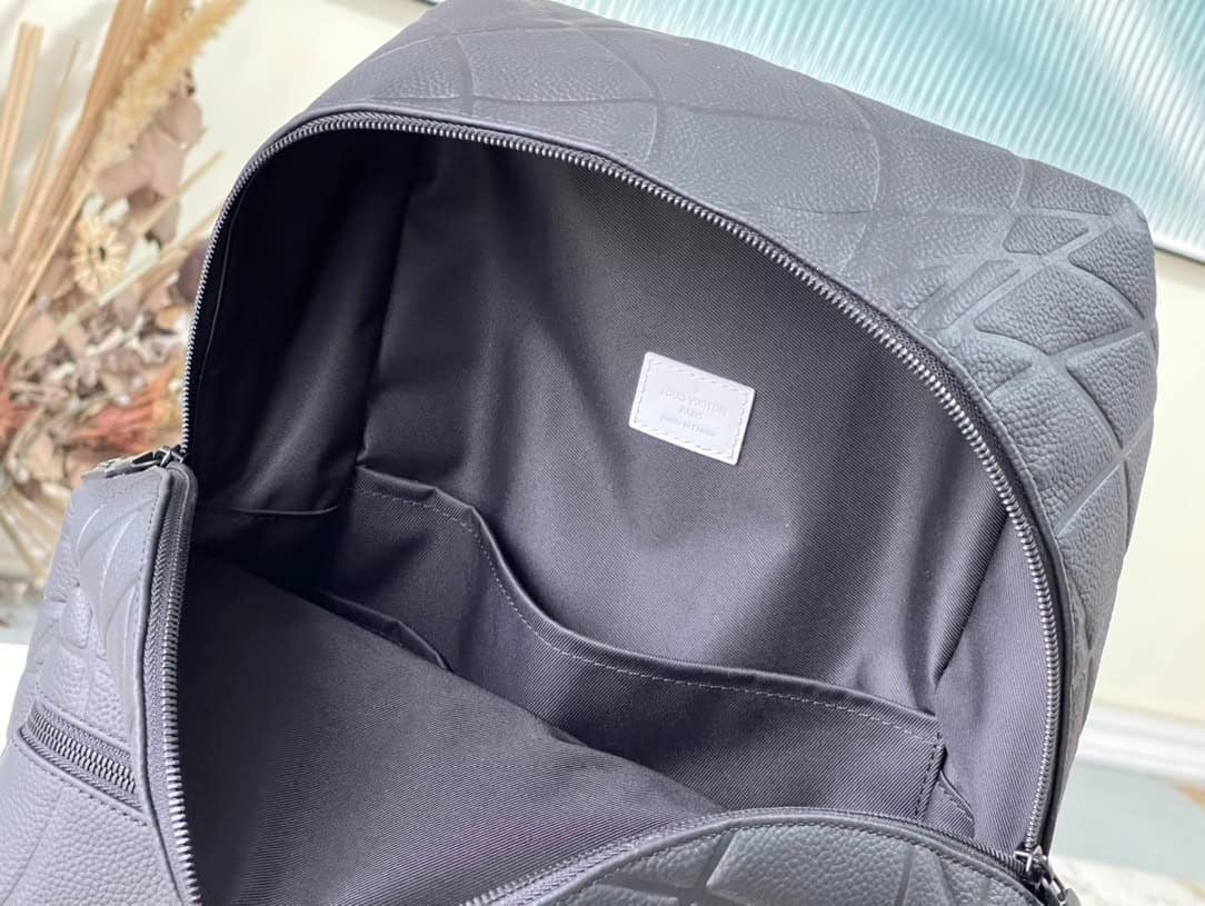Black full leather backpack series DISCOVERY small backpack Discovery small backpack is made of Taïga leather, reinterpreting the classic campus trend design. A glossy exterior wraps around two interior pockets and an iPad pocket, and two adjustable shoulder straps ensure comfortable carrying.
