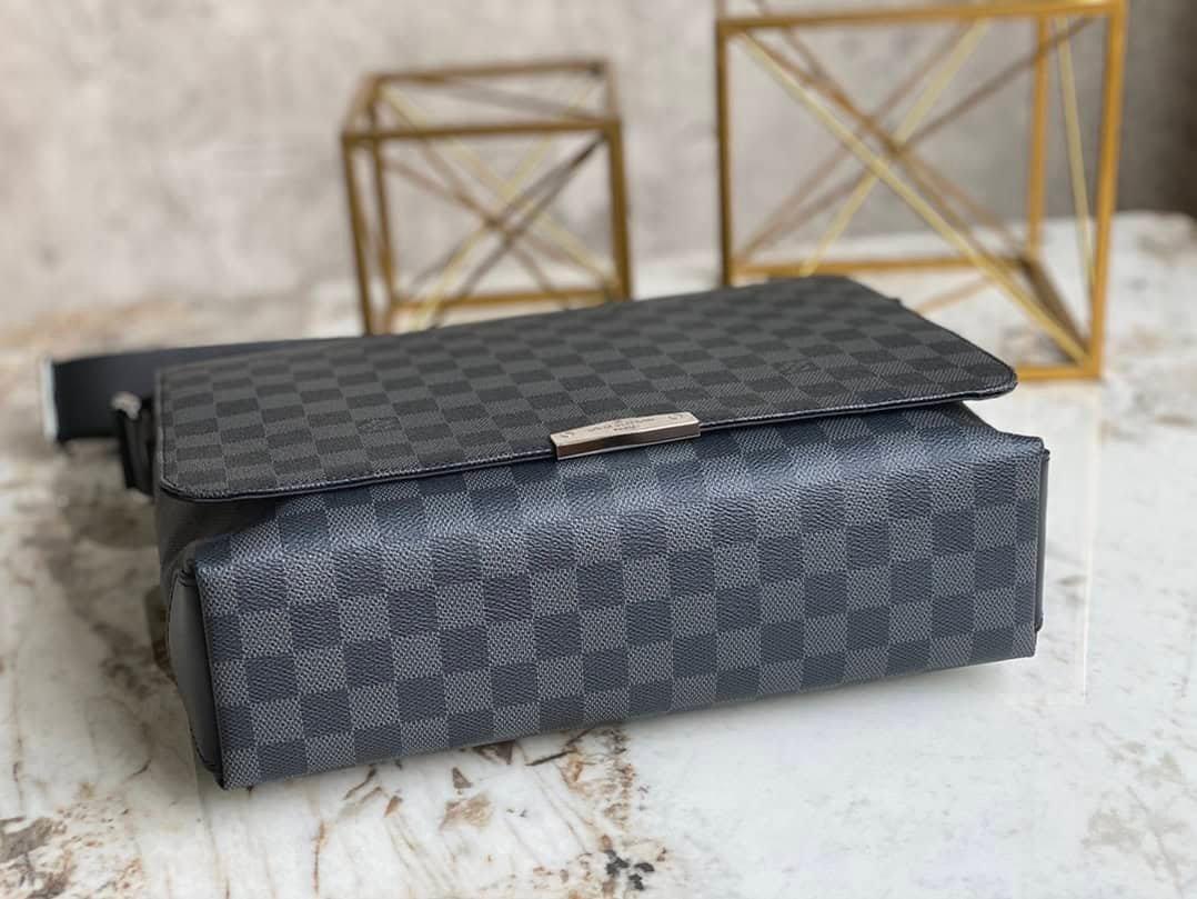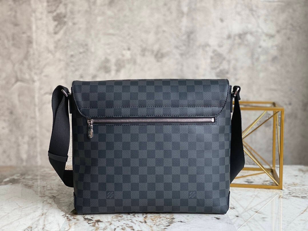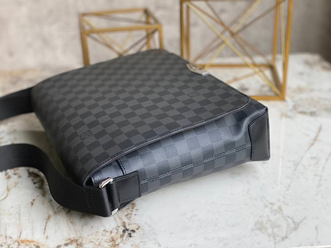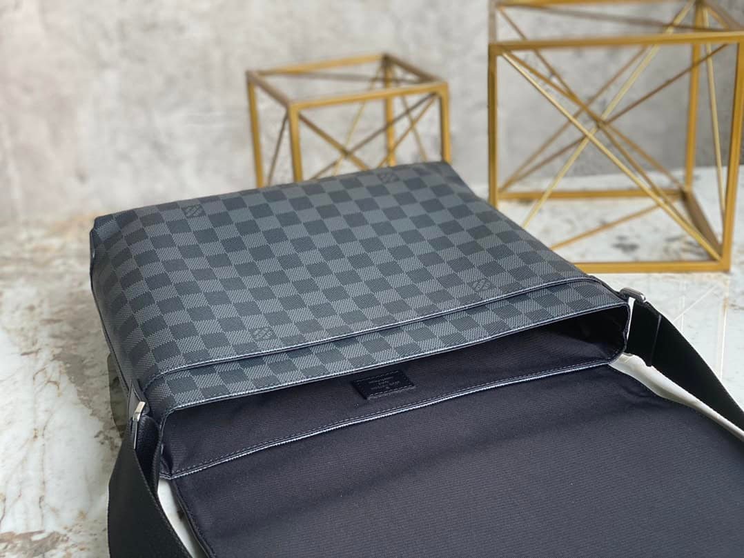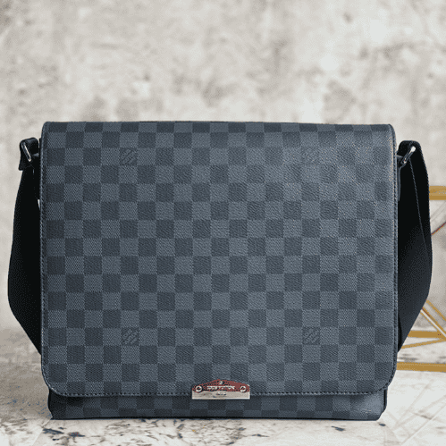 Heiger Messenger Bag Messenger Bag Series District Medium Messenger Bag The new District medium sized messenger bag continues the elegant details, light texture and ample space. The multi-pocket design allows it to hold A4-sized documents, iPads and other items. It is an ideal choice for urban men. Gorgeous Damier Ebène canvas is the icing on the cake.
