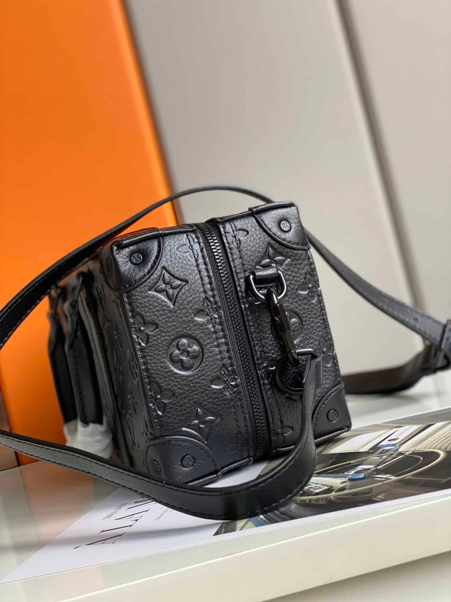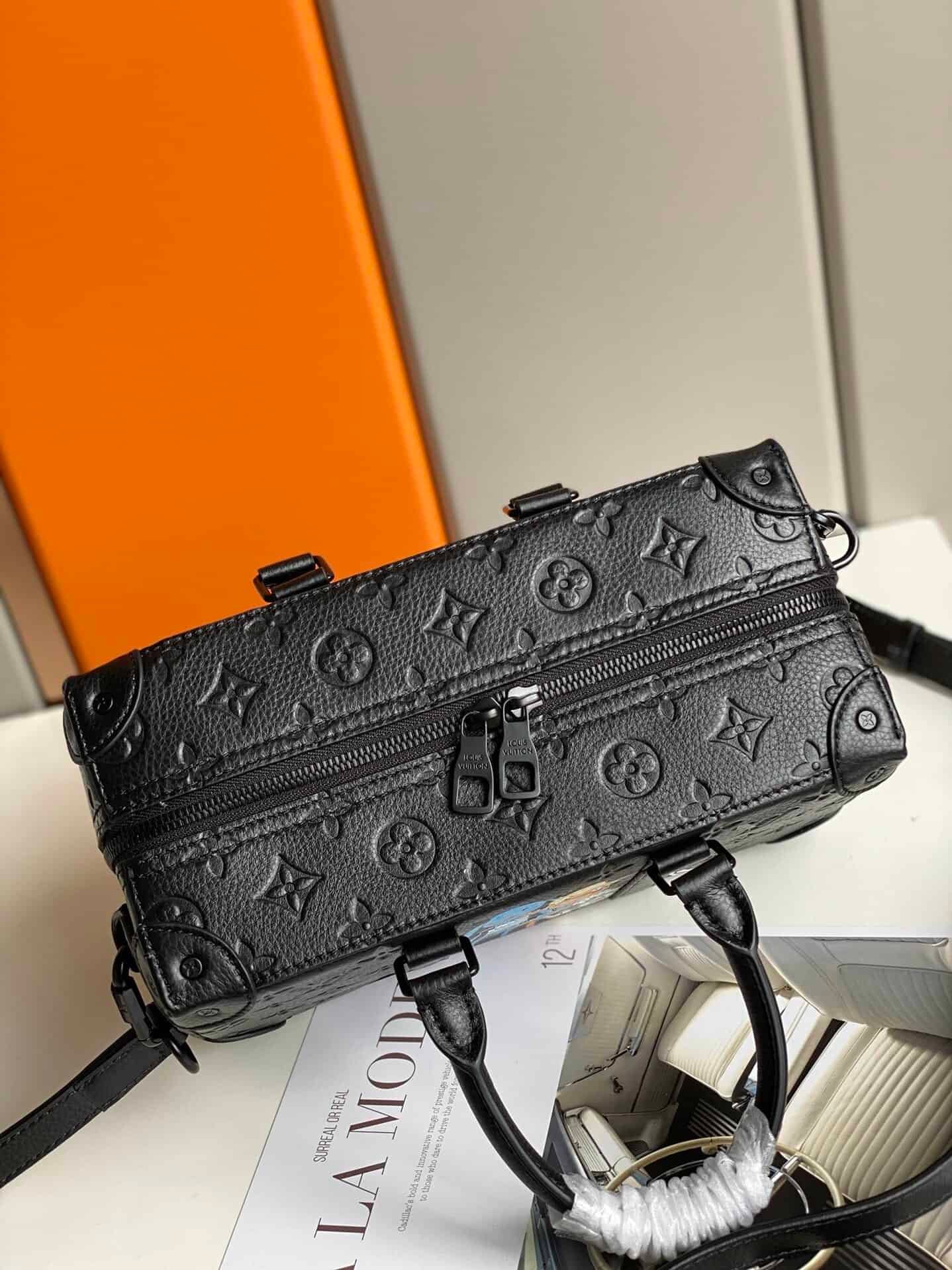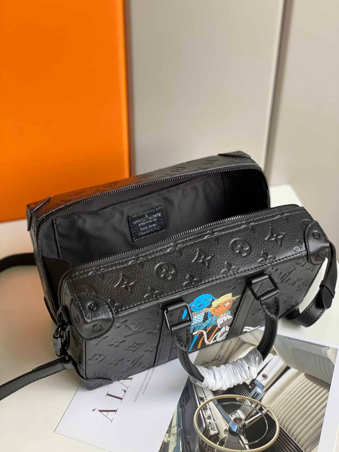 Black full leather embossed doll print SPEEDY SOFT TRUNK handbag Speedy Soft Trunk handbag is Taurillon leather embossed Monogram pattern showing Virgil Abloh’s “Zoooom with Friends” animation image created for the 2021 spring and summer men’s fashion show can be Detach the shoulder strap and top handle for multiple carrying options