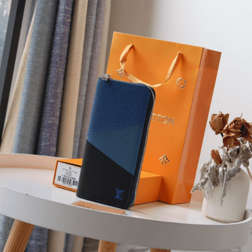 Louis Vuitton Elegant Men’s Vertical Zip Wallet – Blue/Black 93796 | Sandra Bags