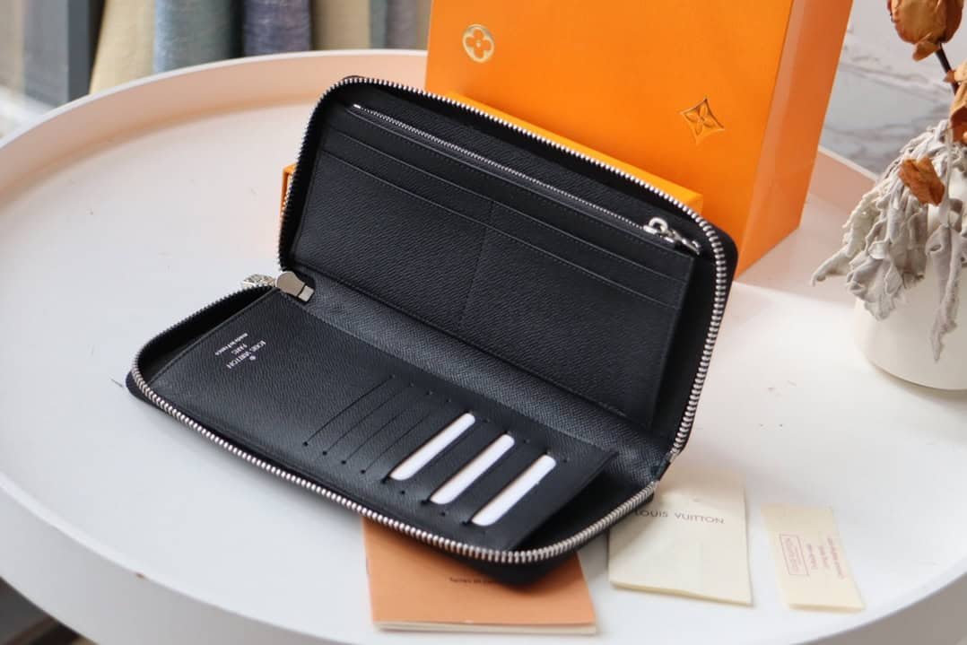 Elegant men’s vertical zip wallet in durable Damier Graphite canvas. Multiple practical pockets and compartments easily hold cash, credit cards and change.