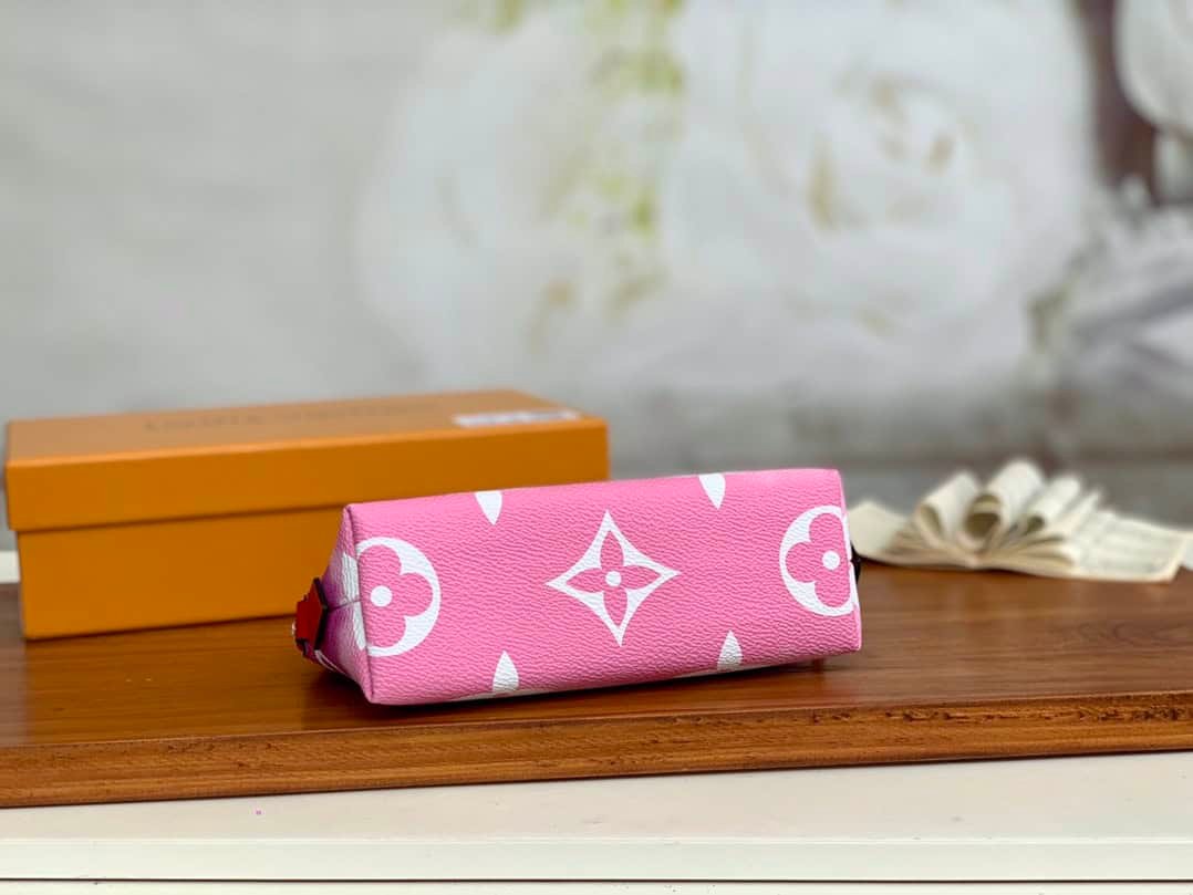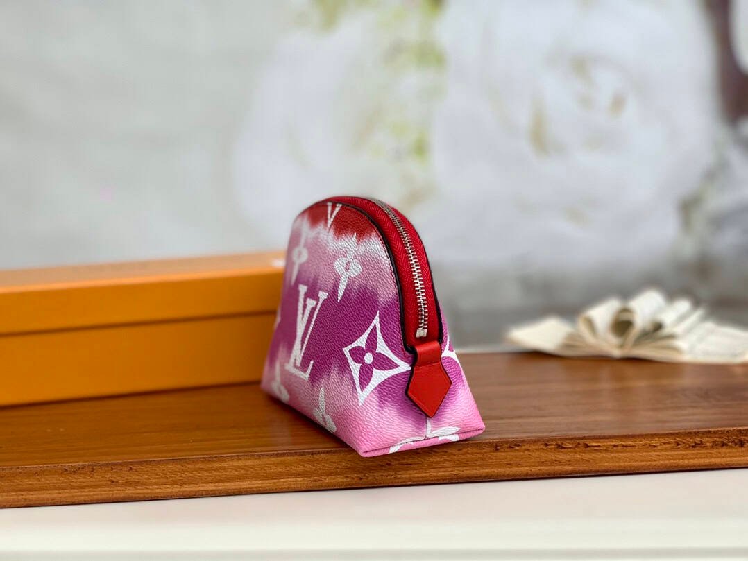 This cosmetic bag joins the Escale accessories and leather goods collection for summer 2020. Featuring a new tie-dye print in Monogram Giant canvas, it’s roomy, with a wide zip opening and a washable interior for everyday wear or on-the-go.