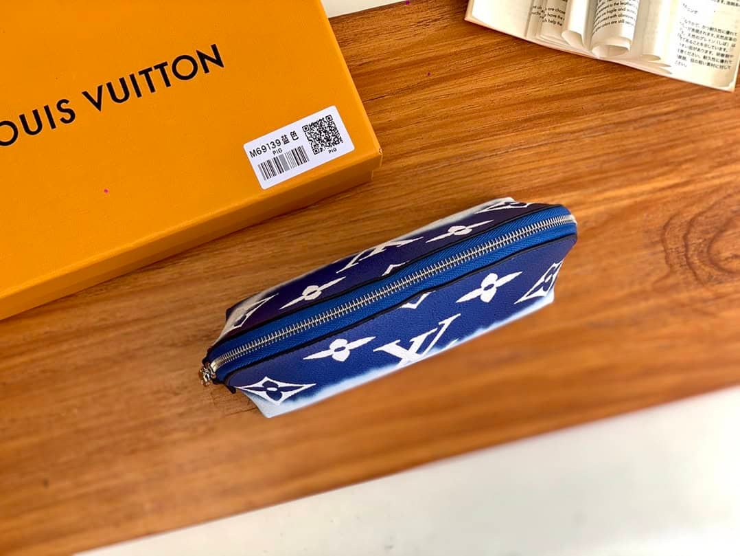 This cosmetic bag joins the Escale accessories and leather goods collection for summer 2020. Featuring a new tie-dye print in Monogram Giant canvas, it’s roomy, with a wide zip opening and a washable interior for everyday wear or on-the-go.