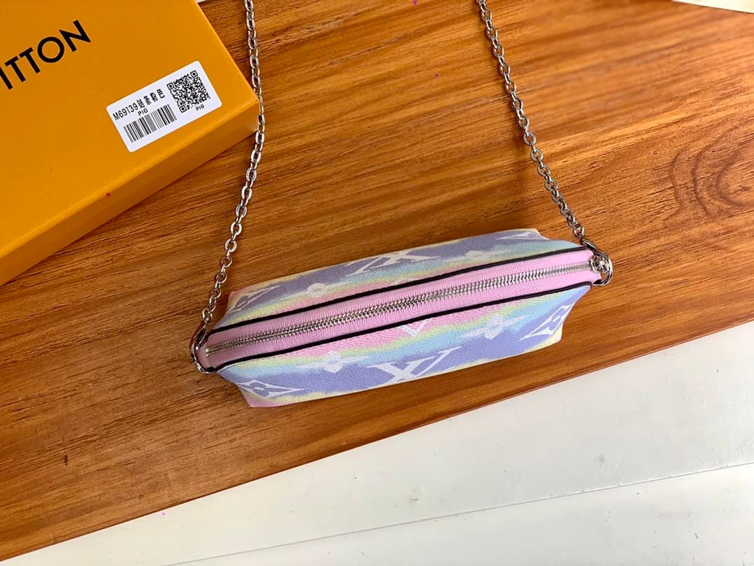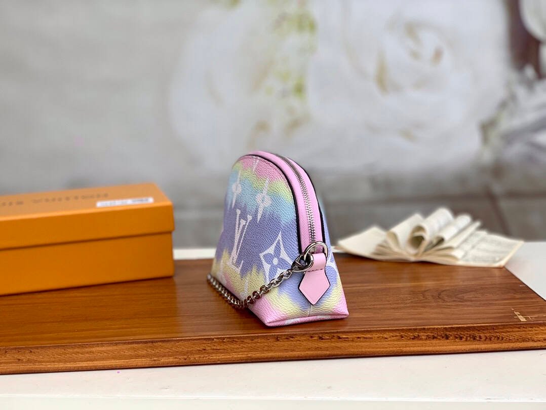 This cosmetic bag joins the Escale accessories and leather goods collection for summer 2020. Featuring a new tie-dye print in Monogram Giant canvas, it’s roomy, with a wide zip opening and a washable interior for everyday wear or on-the-go.