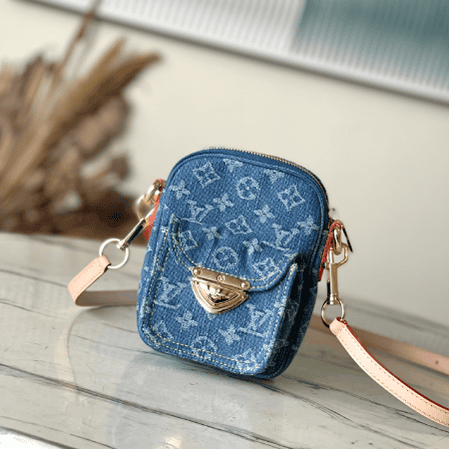 Fairfax Pochette is made from stone-washed Monogram denim and features a removable natural leather strap. In addition to the main zippered compartment, there is a small pocket on the front that can be closed with House’s eye-catching folding lock. The Fairfax Pochette has just enough space to hold an iPhone, a card holder, lipstick and keys.