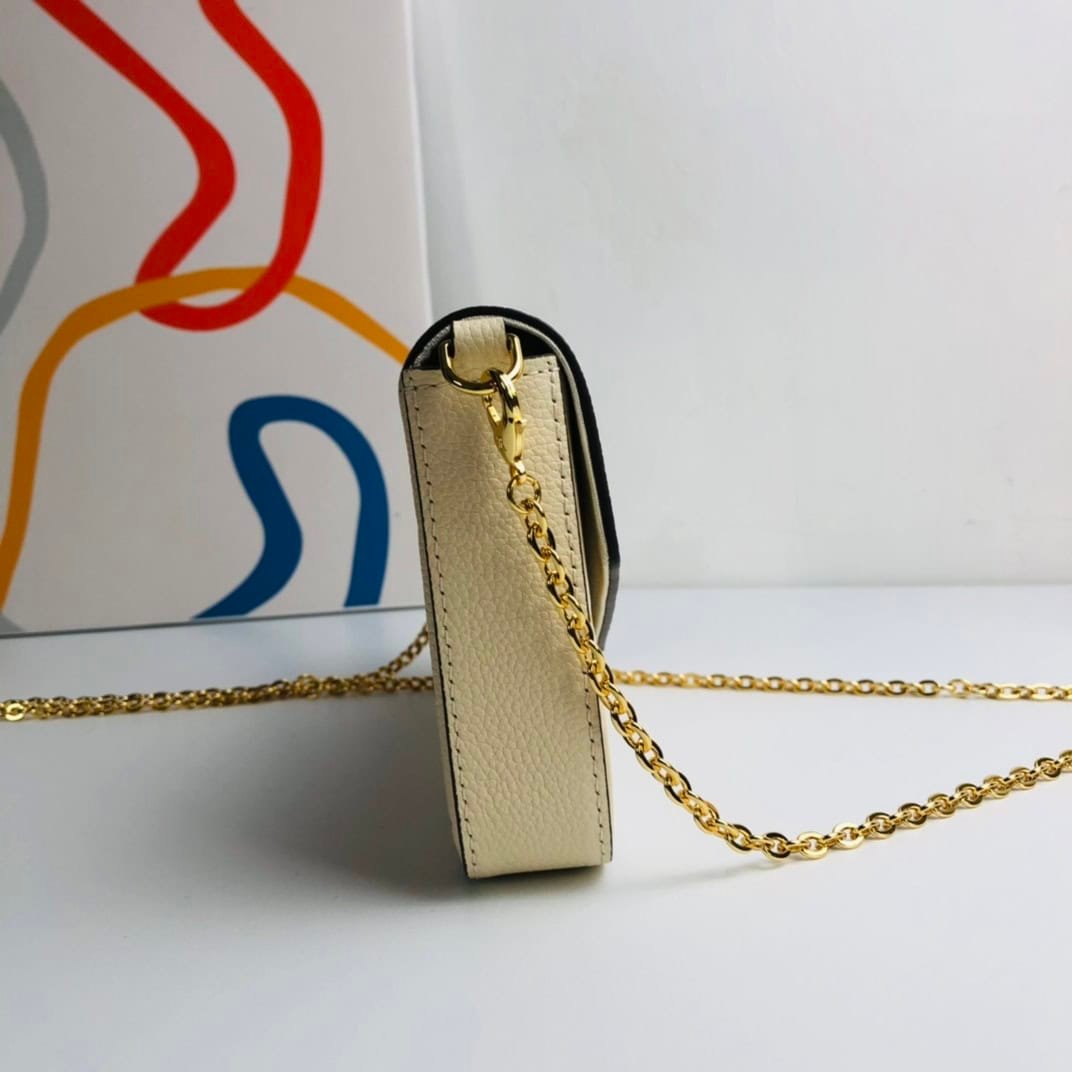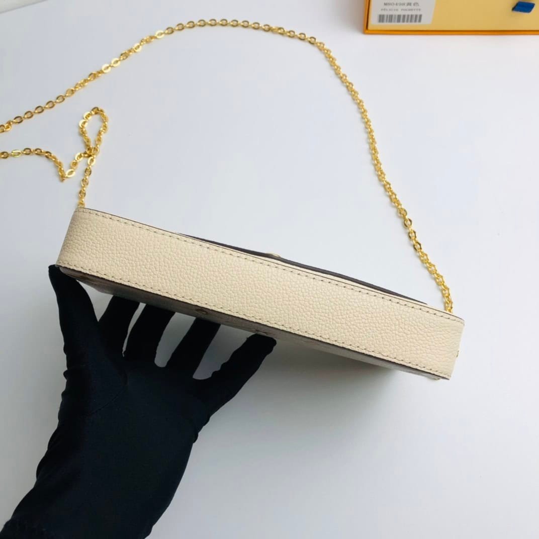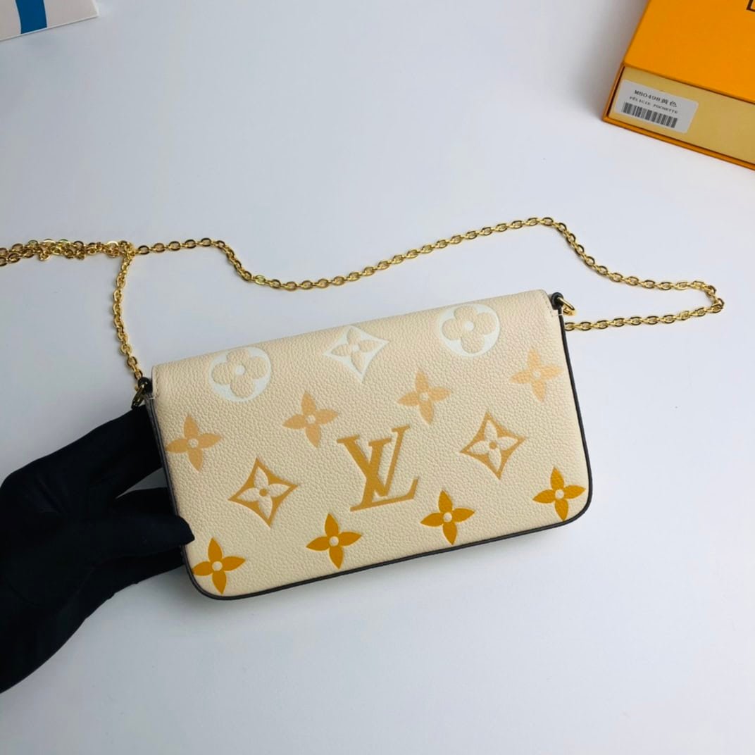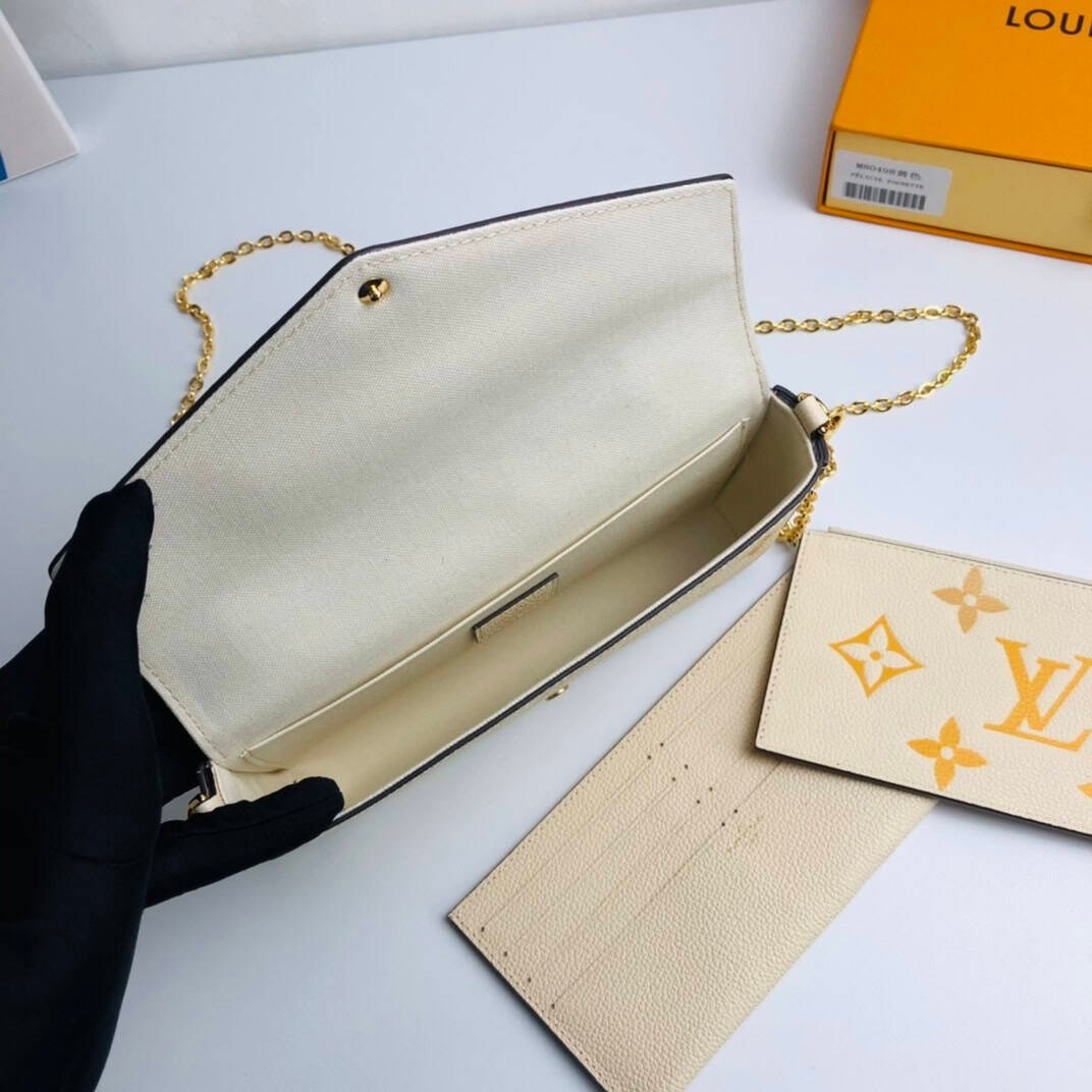 The special Félicie Pochette chain bag is rendered in soft grained Monogram Empreinte leather in subtly gradated colors, embossed with Monogram embossing, with a detachable chain and detachable pocket. Available in ready-to-wear, leather goods and accessories from the By The Pool Summer 2021 capsule collection.