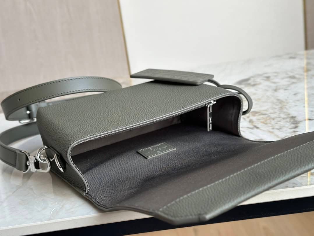 Green full leather men’s bag messenger bag series Flap mini handbag is made of cow leather, and its cut corners are inspired by the creation of the old Air France letterhead by the LV Aerogram series. The details are marked with LV letters, the magnetic buckle flap opens ample compartments, and the adjustable shoulder strap is easy to carry.