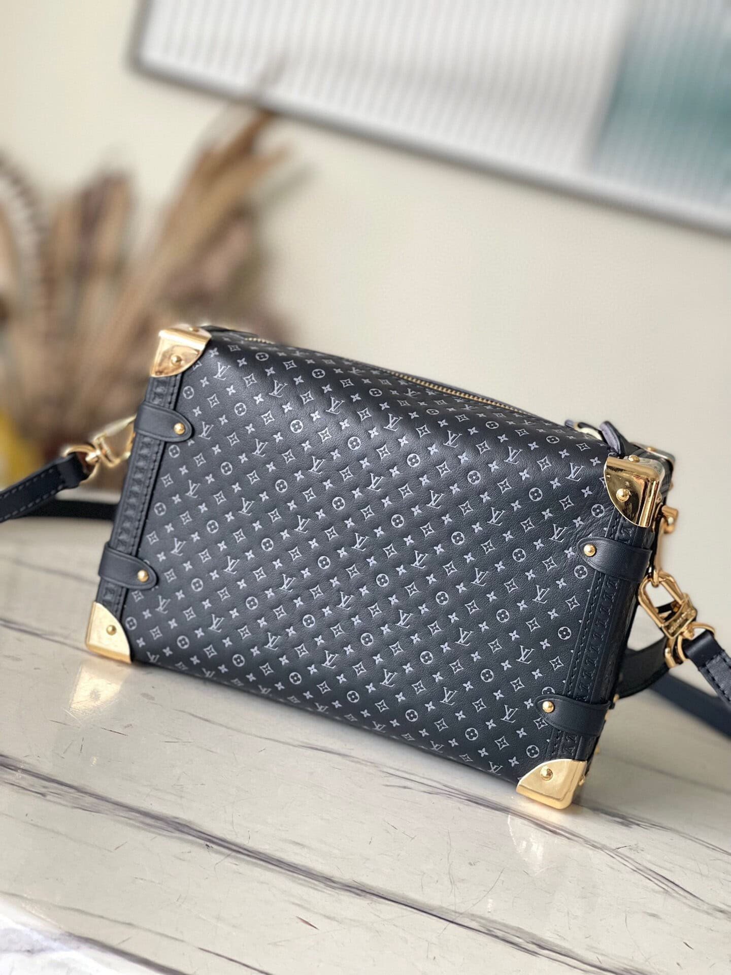 Black full leather bag inspired by suitcase. The overall use is the classic monogram, the bag is surrounded by metal edge design, retains the signature hard box technology, perfectly blends leather and metal, soft and hard, not only shows the softness of the leather but also incorporates a bit of laziness and casualness .